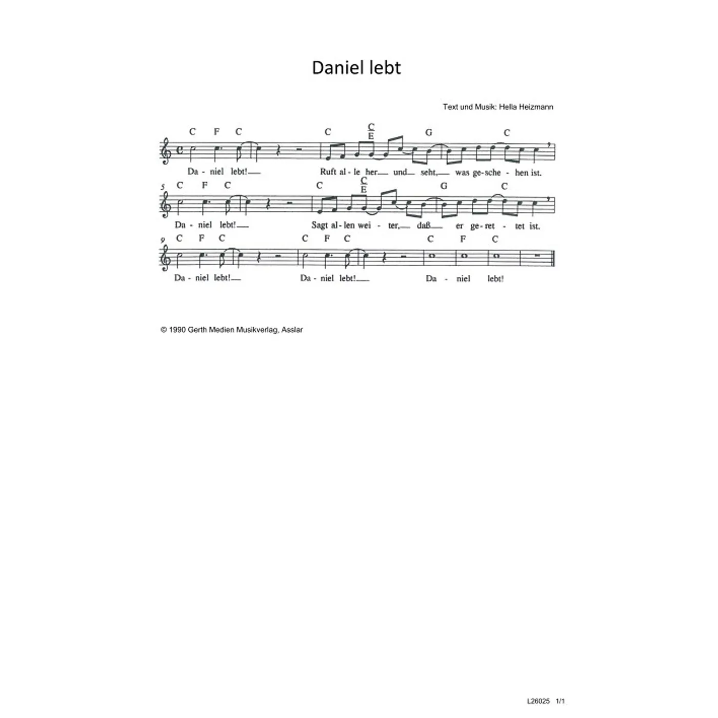 Daniel lebt (diese Variante haben Sie gerade ausgewählt) (einstimmig, mit Akkorden, C-Dur) Hella Heizmann (Komposition, Text) |