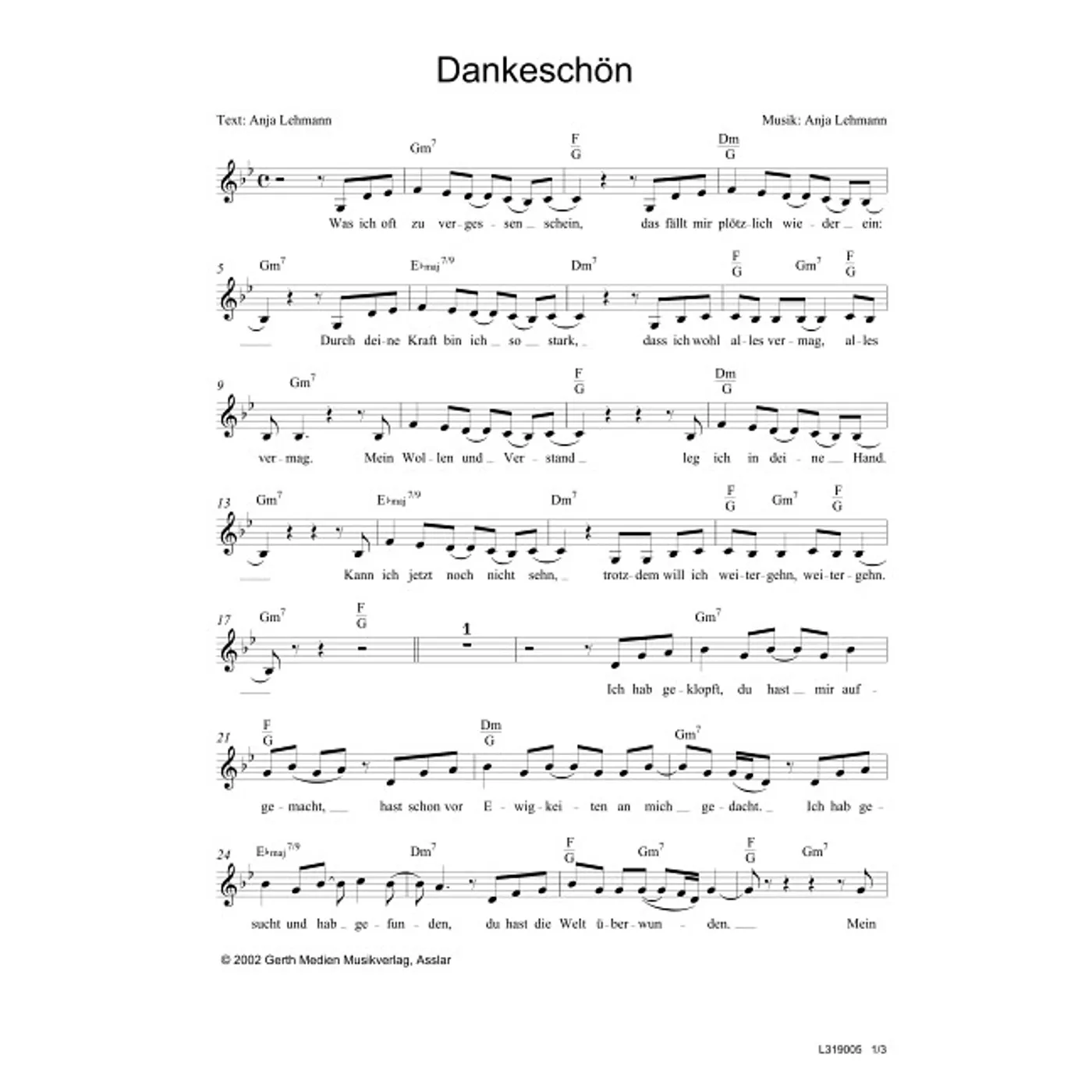 Dankeschön (diese Variante haben Sie gerade ausgewählt) (einstimmig, mit Akkorden, G-Moll) Anja Lehmann (Komposition, Text) |