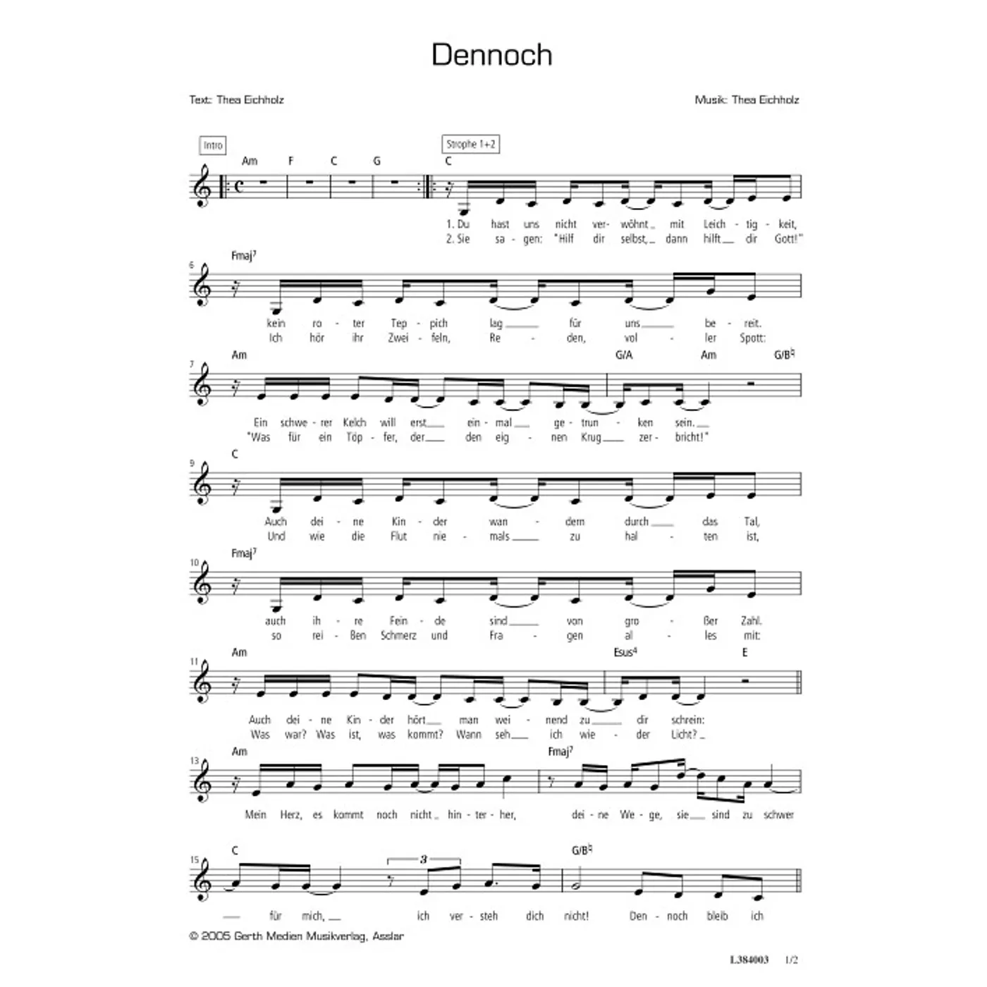 Dennoch (diese Variante haben Sie gerade ausgewählt) (modern, einstimmig, mit Akkorden, a-moll-Moll) Thea Eichholz (Komposition, Text) |