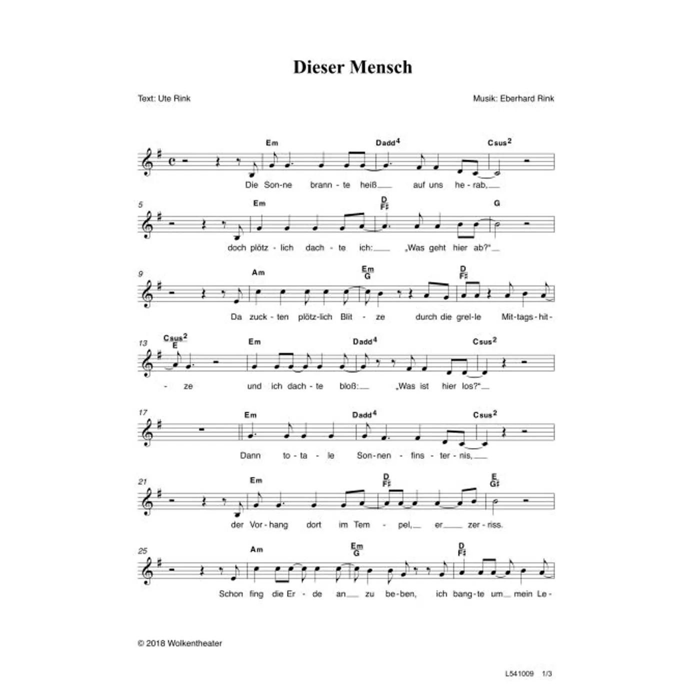 Dieser Mensch (diese Variante haben Sie gerade ausgewählt) (dreistimmig, mit Akkorden, F-Dur) Eberhard Rink (Komposition), Ute Rink (Text) |