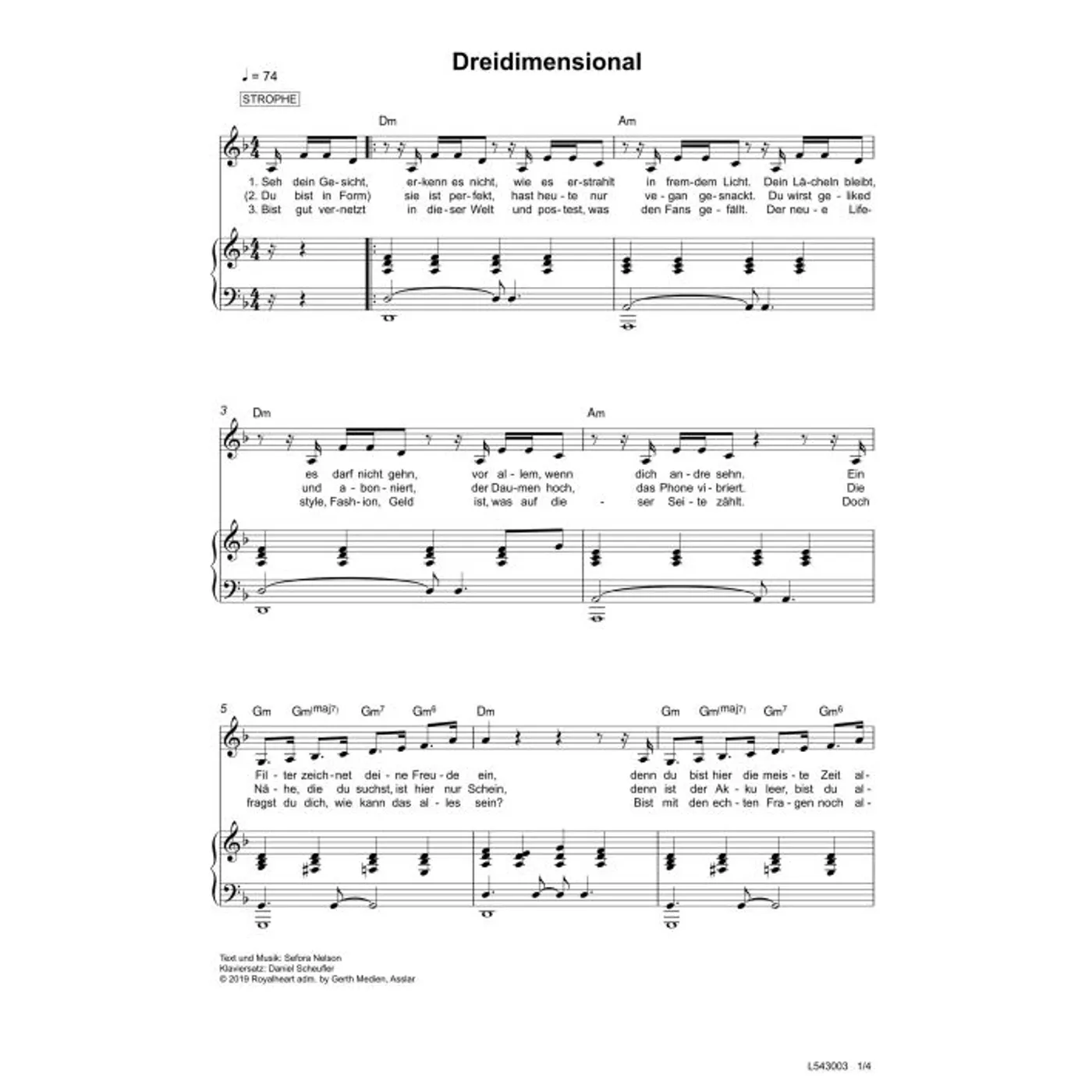 Dreidimensional (diese Variante haben Sie gerade ausgewählt) (Klavier, einstimmig, mit Akkorden, D-Moll) Sefora Nelson (Komposition, Text), Daniel Scheufler (Klaviersatz) |