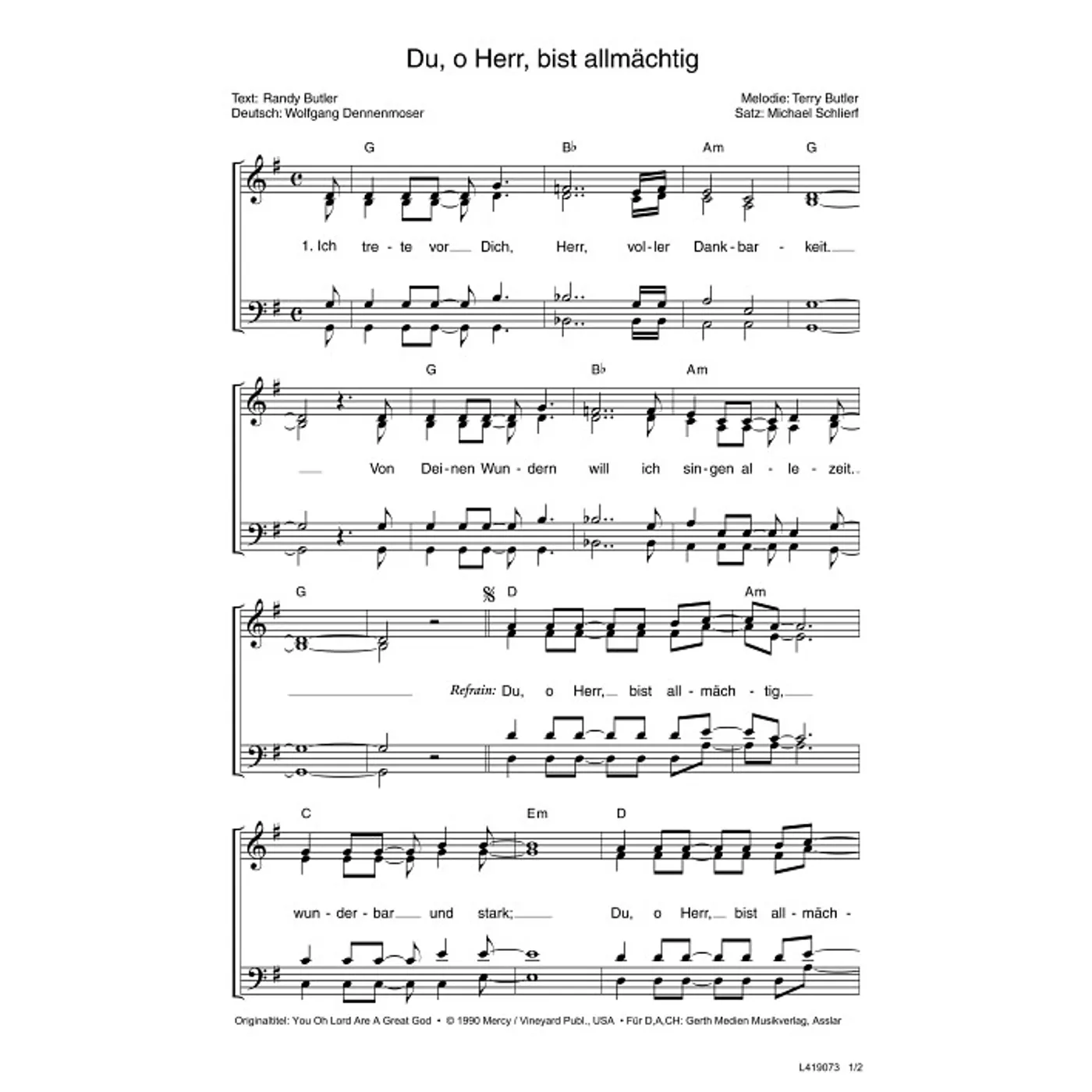 Dies ist ein Download-Artikel und kann nach dem Kauf digital heruntergeladen werden. Vorschau Terry Butler (Komposition) Randy Butler (Text) Michael Schlierf (Chorsatz) Wolfgang Dennenmoser (Übersetzung) Du, o Herr, bist allmächtig Gemischter Chor SATB (Noten - Download) Bitte beachten Sie: Downloads sind aktuell nur in Deutschland erhältlich. Bitte wählen Sie aus, für wie viele Kopien/Ausdrucke Sie eine Lizenz erwerben möchten. Die Lizenz wird entsprechend auf dem Dokument vermerkt. Noten - Download Weitere Varianten Alle Varianten anzeigen und vergleichen 1,50 € Sofort Lieferbar (per Download) Günstige Mengenpreise verfügbar Günstige Mengenpreise (DE) Kaufen Sie 2 zum Preis von je 1,43 € und sparen Sie 5% Kaufen Sie 10 zum Preis von je 1,35 € und sparen Sie 10% Kaufen Sie 25 zum Preis von je 1,28 € und sparen Sie 15% Kaufen Sie 50 zum Preis von je 1,20 € und sparen Sie 20% Kaufen Sie 100 zum Preis von je 1,13 € und sparen Sie 25% Lizenz pro Kopie/Ausdruck: Bestellen Sie den Artikel jetzt auf: Informationen zur Lizenz Details Erscheinungstermin: 19.07.2016 Verlag: VINEYARD Artikel-Nr.: W80032484 Originaltitel: You Oh Lord Are A Great God Tonart: G-Dur Stil/Genre: modern Satz: gemischter Chor, mit Akkorden, vierstimmig Seitenzahl: 2 S. Hinweise: DIN A4 Dateigröße insg.: 218,2 Kilobyte Dieses Produkt ist preisgebunden: Ja Download-Material: L419073 (PDF) Angaben zum Hersteller nach GPSR: Gerth Medien i.d. SCM Verlagsgruppe GmbH Berliner Ring 62 35576 Wetzlar DEUTSCHLAND info@scm-verlagsgruppe.de Weitere Details Weitere Varianten Noten-Downloads Du, o Herr, bist allmächtig (diese Variante haben Sie gerade ausgewählt) (modern, gemischter Chor, mit Akkorden, vierstimmig, G-Dur) Terry Butler (Komposition), Randy Butler (Text), Michael Schlierf (Chorsatz), Wolfgang Dennenmoser (Übersetzung) modern, gemischter Chor, mit Akkorden, vierstimmig, G-Dur 1,50 € Du, o Herr, bist allmächtig (Gemeindelied, einstimmig, mit Akkorden, G-Dur) Terry Butler (Komposition), Randy Butler (Text), Wolfgang Dennenmoser (Übersetzung) Gemeindelied, einstimmig, mit Akkorden, G-Dur 1,50 € Die Preise stellen die Einzelpreise der jeweils verfügbaren Einzeldownloads dar. Bewertungen Für dieses Produkt gibt es noch keine Rezensionen. Weitere Artikel von Terry Butler zur Produktseite von Du, o Herr, bist allmächtig Du, o Herr, bist allmächtig Noten - Download 1,50 € Download zur Produktseite von Der Allmächtige regiert Der Allmächtige regiert Noten - Download 1,50 € Download zur Produktseite von Sehnsucht nach Dir Sehnsucht nach Dir Noten - Download 2,00 € Download zur Produktseite von Der Allmächtige regiert Der Allmächtige regiert Noten - Download 2,00 € Download Alle Artikel von Terry Butler anzeigen Das könnte Sie auch interessieren zur Produktseite von So groß ist der Herr So groß ist der Herr Noten - Download 1,50 € Download zur Produktseite von Wunderbarer Hirt Wunderbarer Hirt Noten - Download 1,50 € Download zur Produktseite von Immer mehr Immer mehr Noten - Download 2,00 € Download zur Produktseite von Komm zu Jesus Komm zu Jesus Noten - Download 1,50 € Download zur Produktseite von All die Fülle ist in dir All die Fülle ist in dir Noten - Download 1,50 € Download zur Produktseite von Deine Liebe fließt zu mir Deine Liebe fließt zu mir Noten - Download 2,00 € Download zur Produktseite von Deine Liebe fließt zu mir Deine Liebe fließt zu mir Noten - Download 2,00 € Download