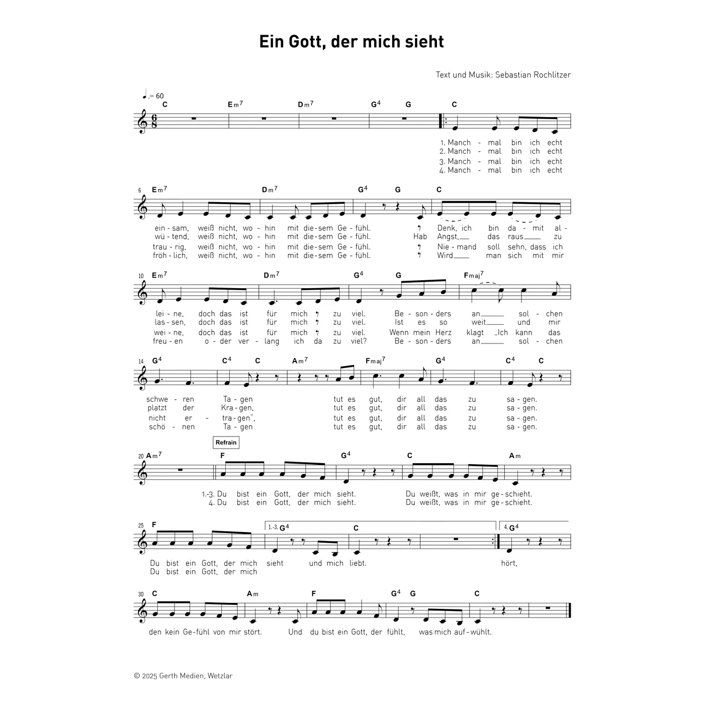 Ein Gott der mich sieht (diese Variante haben Sie gerade ausgewählt) (Kinderlieder, einstimmig, C-Dur) Sebastian Rochlitzer (Melodie, Text) |