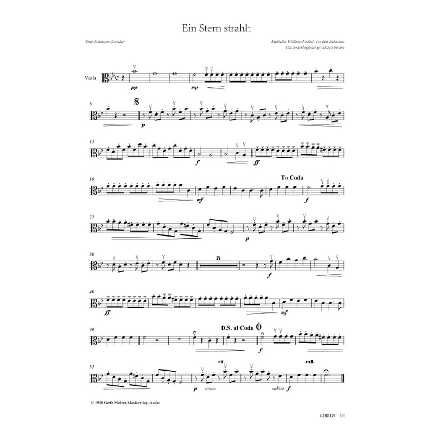 Ein Stern strahlt (Viola) (diese Variante haben Sie gerade ausgewählt) (traditionell, Orchestereinzelstimme) Klaus Heizmann (Komposition), Johannes Jourdan (Text), Marco Braun (Bearbeiter, Bearbeitung) |