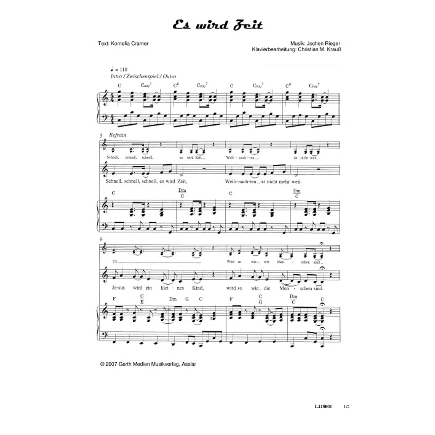 Es wird Zeit (diese Variante haben Sie gerade ausgewählt) (modern, Backings, Kinderchor, Klavier, einstimmig, mit Akkorden, C-Dur) Jochen Rieger (Komposition), Konny Cramer (Text), Christian Krauß (Bearbeiter) |