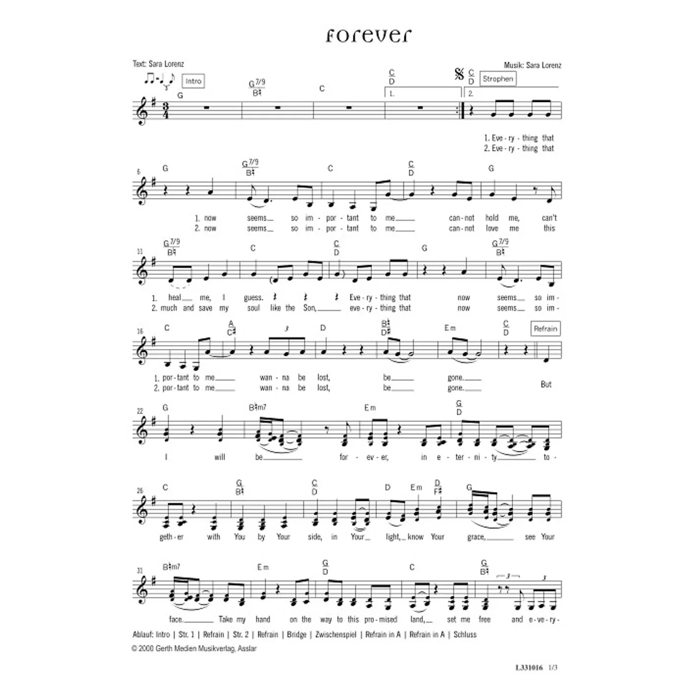 Forever (diese Variante haben Sie gerade ausgewählt) (modern, dreistimmig, mit Akkorden, G-Dur) Sara Lorenz (Komposition, Text) |