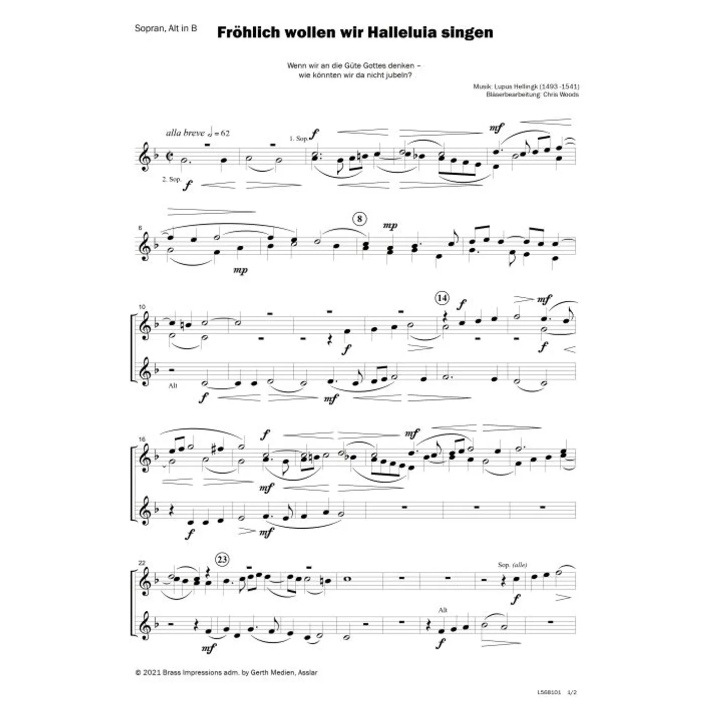 Dies ist ein Download-Artikel und kann nach dem Kauf digital heruntergeladen werden. Vorschau Chris Woods (Bläsersatz) Fröhlich wollen wir Halleluia singen Bläserpartitur für 4-stimmigen Posaunenchor / B-Schreibweise (Noten - Download) Bitte beachten Sie: Downloads sind aktuell nur in Deutschland erhältlich. Bitte wählen Sie aus, für wie viele Kopien/Ausdrucke Sie eine Lizenz erwerben möchten. Die Lizenz wird entsprechend auf dem Dokument vermerkt. 2,80 € Sofort Lieferbar (per Download) Günstige Mengenpreise verfügbar Günstige Mengenpreise (DE) Kaufen Sie 2 zum Preis von je 2,66 € und sparen Sie 5% Kaufen Sie 10 zum Preis von je 2,52 € und sparen Sie 10% Kaufen Sie 25 zum Preis von je 2,38 € und sparen Sie 15% Kaufen Sie 50 zum Preis von je 2,24 € und sparen Sie 20% Kaufen Sie 100 zum Preis von je 2,10 € und sparen Sie 25% Lizenz pro Kopie/Ausdruck: Bestellen Sie den Artikel jetzt auf: Informationen zur Lizenz Details Erscheinungstermin: 02.08.2022 Verlag: Gerth Medien Artikel-Nr.: W80034475 Stil/Genre: modern Satz: Bläser, vierstimmig, Partituren, Bläserpartitur Seitenzahl: 2 S. Hinweise: DIN A4 Dateigröße insg.: 134,3 Kilobyte Dieses Produkt ist preisgebunden: Ja Download-Material: L568101 (PDF) Angaben zum Hersteller nach GPSR: Gerth Medien i.d. SCM Verlagsgruppe GmbH Berliner Ring 62 35576 Wetzlar DEUTSCHLAND info@scm-verlagsgruppe.de Weitere Details Weitere Varianten Noten-Downloads Fröhlich wollen wir Halleluia singen (diese Variante haben Sie gerade ausgewählt) (modern, Bläser, Bläserpartitur, Partituren, vierstimmig) Chris Woods (Bläsersatz) modern, Bläser, Bläserpartitur, Partituren, vierstimmig 2,80 € Die Preise stellen die Einzelpreise der jeweils verfügbaren Einzeldownloads dar. Bewertungen Für dieses Produkt gibt es noch keine Rezensionen. Weitere Artikel von Chris Woods zur Produktseite von Mutig komm ich vor den Thron Mutig komm ich vor den Thron Noten - Download 3,80 € Download zur Produktseite von Amazing Grace - Bläserpartitur Amazing Grace - Bläserpartitur Liederbuch - Geheftet 15,00 € Lieferbar zur Produktseite von Mutig komm ich vor den Thron Mutig komm ich vor den Thron Noten - Download 3,80 € Download zur Produktseite von Stern, auf den ich schaue Stern, auf den ich schaue Noten - Download 2,80 € Download zur Produktseite von This Little Light Of Mine This Little Light Of Mine Noten - Download 2,80 € Download zur Produktseite von Lobe den Herren, den mächtigen König der Ehren Lobe den Herren, den mächtigen König der Ehren Noten - Download 2,80 € Download zur Produktseite von I Have Decided To Follow I Have Decided To Follow Noten - Download 2,80 € Download zur Produktseite von Anker in der Zeit Anker in der Zeit Noten - Download 3,80 € Download zur Produktseite von Stern, auf den ich schaue Stern, auf den ich schaue Noten - Download 2,80 € Download zur Produktseite von This Little Light Of Mine This Little Light Of Mine Noten - Download 3,80 € Download zur Produktseite von Lobe den Herren, den mächtigen König der Ehren Lobe den Herren, den mächtigen König der Ehren Noten - Download 2,80 € Download zur Produktseite von Wayfaring Stranger Wayfaring Stranger Noten - Download 3,80 € Download Alle Artikel von Chris Woods anzeigen Das könnte Sie auch interessieren zur Produktseite von Herr, ich komme zu dir Herr, ich komme zu dir Noten - Download 2,80 € Download zur Produktseite von Herr, ich komme zu dir Herr, ich komme zu dir Noten - Download 2,80 € Download