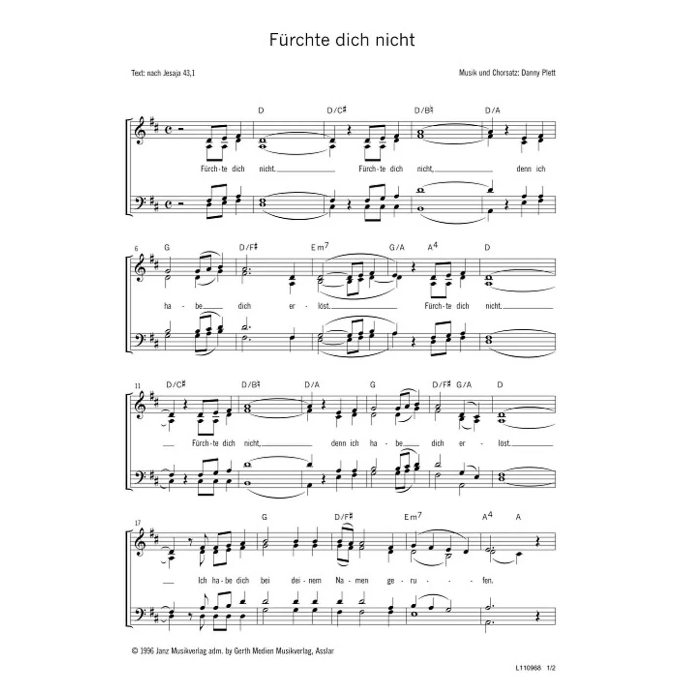 Fürchte dich nicht (diese Variante haben Sie gerade ausgewählt) (gemischter Chor, mit Akkorden, vierstimmig, D-Dur) Danny Plett (Komposition, Chorsatz) |