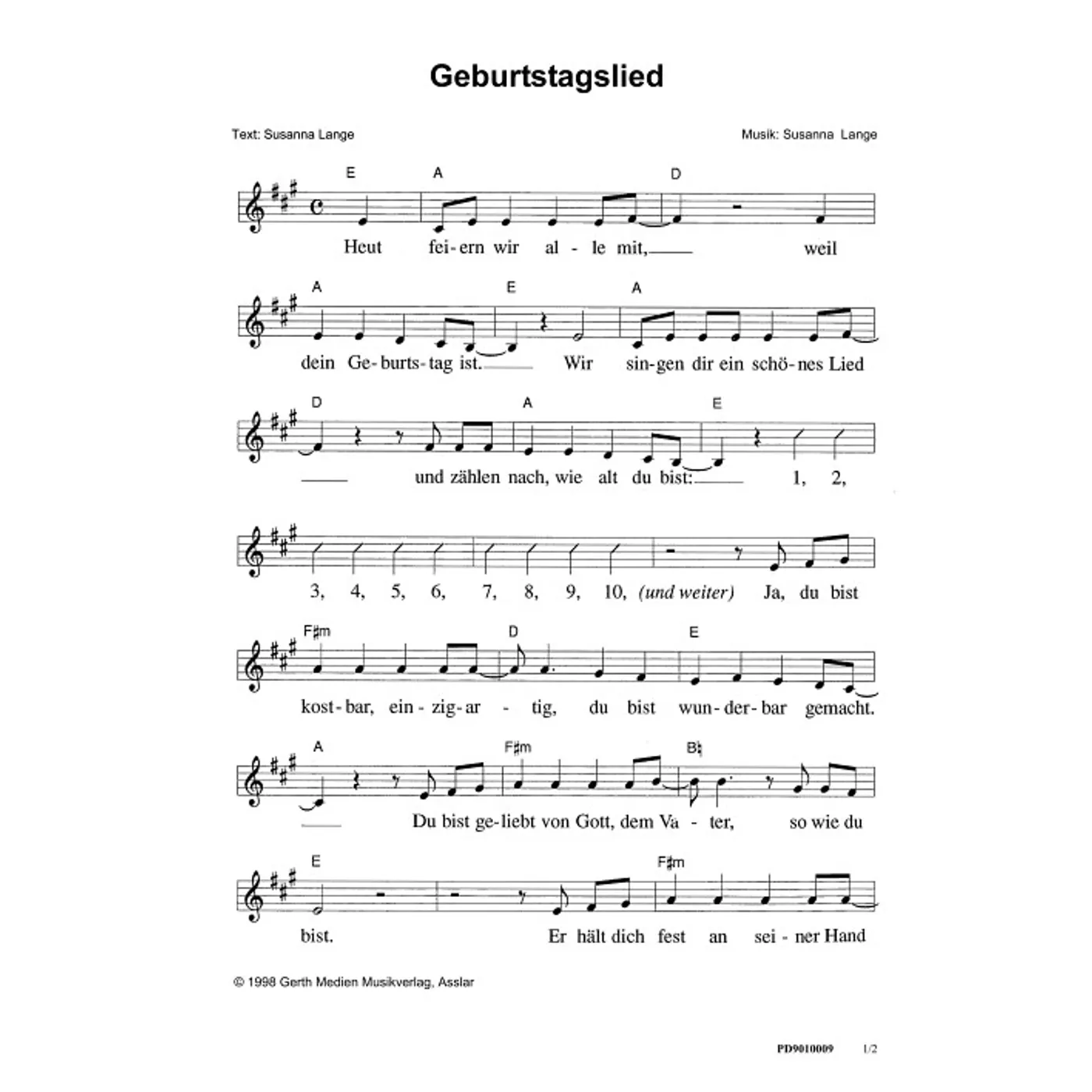 Geburtstagslied (diese Variante haben Sie gerade ausgewählt) (einstimmig, mit Akkorden, E-Dur) Susanna Lange (Komposition, Text) |