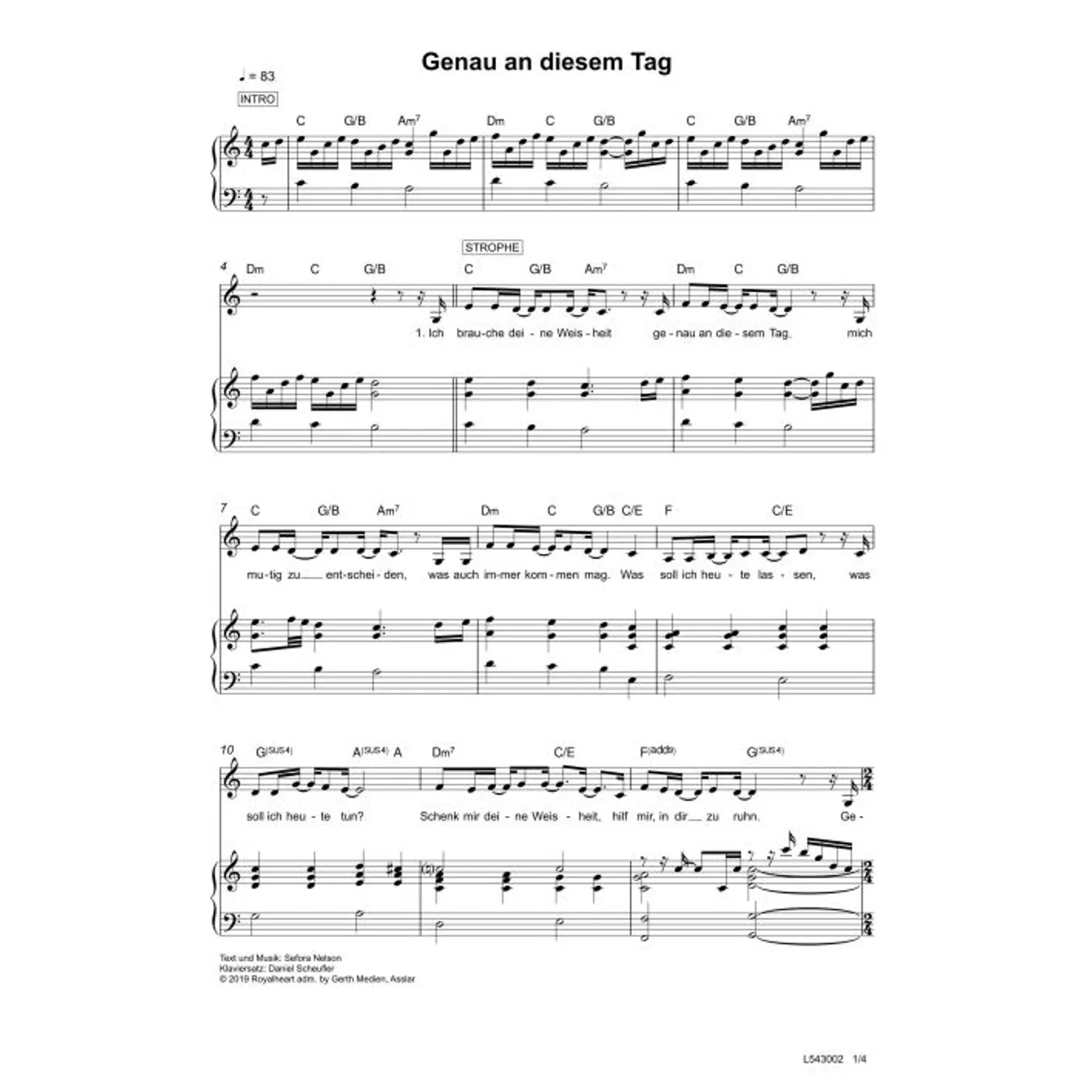Genau an diesem Tag (diese Variante haben Sie gerade ausgewählt) (Klavier, einstimmig, mit Akkorden, C-Dur) Sefora Nelson (Komposition, Text), Daniel Scheufler (Klaviersatz) |
