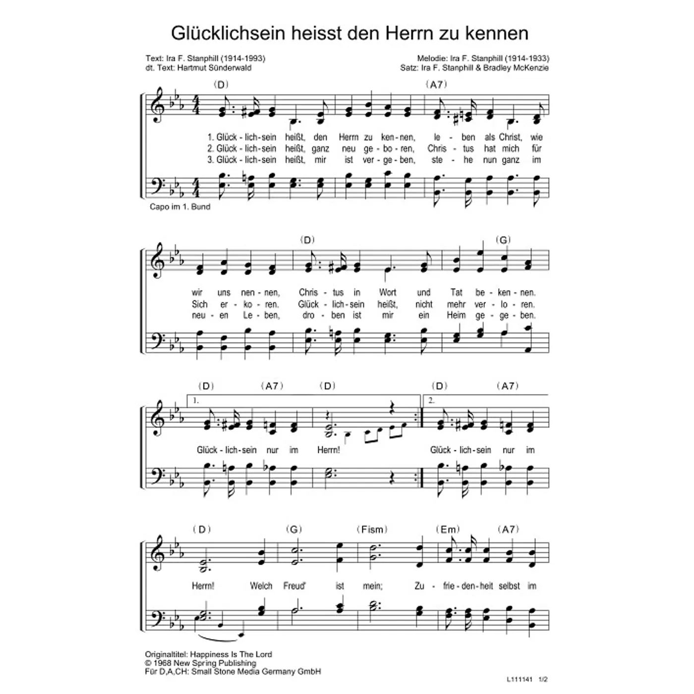 Dies ist ein Download-Artikel und kann nach dem Kauf digital heruntergeladen werden. Vorschau Ira Stanphill (Komposition, Text) Bradely McKenzie (Chorsatz) Hartmut Sünderwald (Übersetzung) Glücklichsein heisst den Herrn zu kennen Gemischter Chor SATB (Noten - Download) Bitte beachten Sie: Downloads sind aktuell nur in Deutschland erhältlich. Bitte wählen Sie aus, für wie viele Kopien/Ausdrucke Sie eine Lizenz erwerben möchten. Die Lizenz wird entsprechend auf dem Dokument vermerkt. 1,50 € Sofort Lieferbar (per Download) Günstige Mengenpreise verfügbar Günstige Mengenpreise (DE) Kaufen Sie 2 zum Preis von je 1,43 € und sparen Sie 5% Kaufen Sie 10 zum Preis von je 1,35 € und sparen Sie 10% Kaufen Sie 25 zum Preis von je 1,28 € und sparen Sie 15% Kaufen Sie 50 zum Preis von je 1,20 € und sparen Sie 20% Kaufen Sie 100 zum Preis von je 1,13 € und sparen Sie 25% Lizenz pro Kopie/Ausdruck: Bestellen Sie den Artikel jetzt auf: Informationen zur Lizenz Details Reihe: Unvergessen - Lieder, die bleiben Erscheinungstermin: 31.01.2018 Verlag: Small Stone Media Artikel-Nr.: W80029005 Originaltitel: Happiness Is The Lord Tonart: Es-Dur Satz: gemischter Chor, mit Akkorden, vierstimmig Seitenzahl: 2 S. Hinweise: DIN A4 Dateigröße insg.: 158,4 Kilobyte Dieses Produkt ist preisgebunden: Ja Download-Material: L111141 (PDF) Angaben zum Hersteller nach GPSR: Gerth Medien i.d. SCM Verlagsgruppe GmbH Berliner Ring 62 35576 Wetzlar DEUTSCHLAND info@scm-verlagsgruppe.de Weitere Details Weitere Varianten Noten-Downloads Glücklichsein heisst den Herrn zu kennen (diese Variante haben Sie gerade ausgewählt) (gemischter Chor, mit Akkorden, vierstimmig, Es-Dur) Ira Stanphill (Komposition, Text), Bradely McKenzie (Chorsatz), Hartmut Sünderwald (Übersetzung) gemischter Chor, mit Akkorden, vierstimmig, Es-Dur 1,50 € Die Preise stellen die Einzelpreise der jeweils verfügbaren Einzeldownloads dar. Bewertungen Für dieses Produkt gibt es noch keine Rezensionen. Weitere Artikel von Ira Stanphill zur Produktseite von Am Kreuz ist Raum für dich Am Kreuz ist Raum für dich Noten - Download 1,50 € Download zur Produktseite von Am Kreuz ist Raum für dich Am Kreuz ist Raum für dich Noten - Download 1,50 € Download zur Produktseite von Ein Leidenskreuz Ein Leidenskreuz Noten - Download 1,50 € Download zur Produktseite von Ich irrte allein Ich irrte allein Noten - Download 1,50 € Download zur Produktseite von Ob die Sonne morgen scheinet Ob die Sonne morgen scheinet Noten - Download 1,50 € Download zur Produktseite von Der Weg war oft so einsam Der Weg war oft so einsam Noten - Download 1,50 € Download zur Produktseite von Der Weg war oft so einsam Der Weg war oft so einsam Noten - Download 1,50 € Download Alle Artikel von Ira Stanphill anzeigen Das könnte Sie auch interessieren zur Produktseite von All unsre Tränen All unsre Tränen Noten - Download 2,80 € Download zur Produktseite von Im Himmel gibt es manches Im Himmel gibt es manches Noten - Download 1,50 € Download zur Produktseite von Seht, das Wunder ist geschehen Seht, das Wunder ist geschehen Noten - Download 1,50 € Download