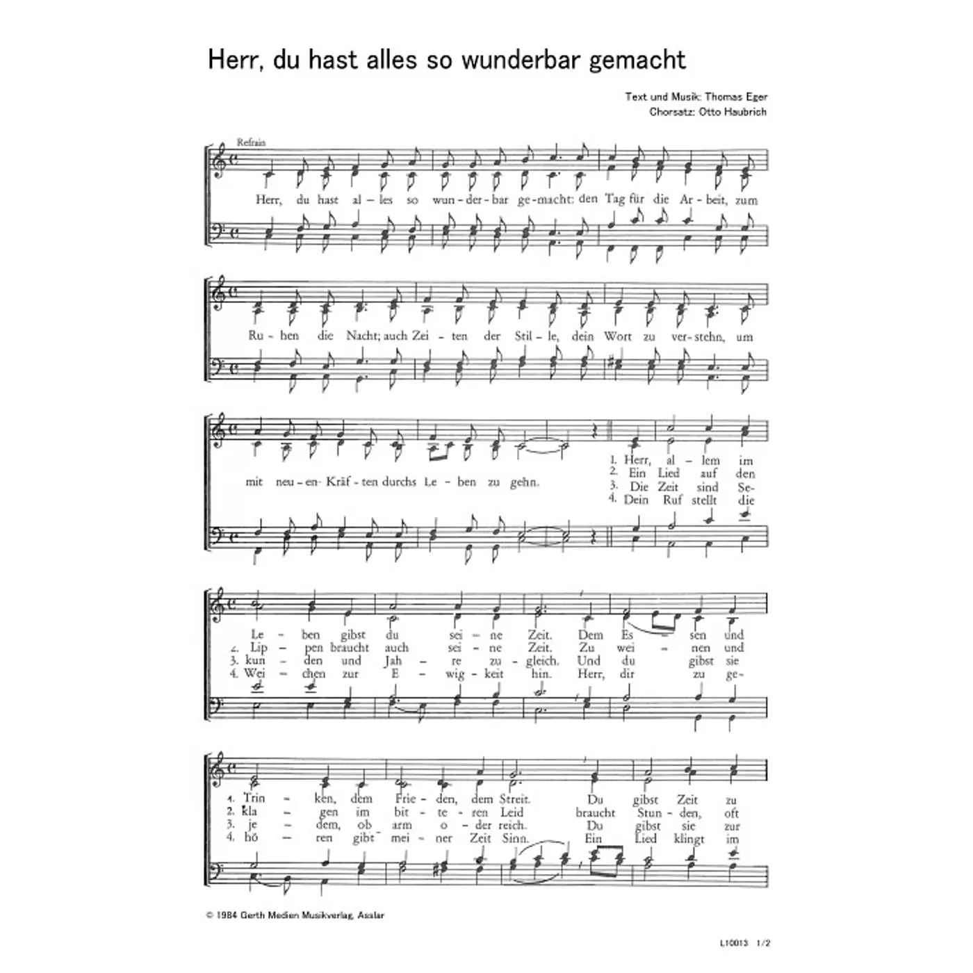 Herr, du hast alles so wunderbar gemacht (diese Variante haben Sie gerade ausgewählt) (traditionell, gemischter Chor, vierstimmig) Thomas Eger (Komposition, Text), Otto Haubrich (Chorsatz) |