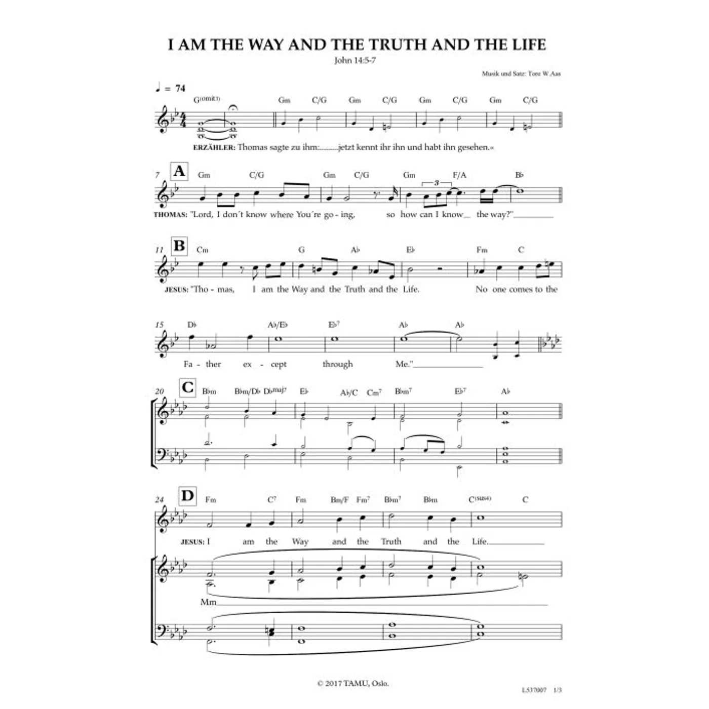 I Am The Way And The Truth (diese Variante haben Sie gerade ausgewählt) (modern, gemischter Chor, mit Akkorden, vierstimmig, G-Moll) Tore W. Aas (Komposition, Chorsatz) |