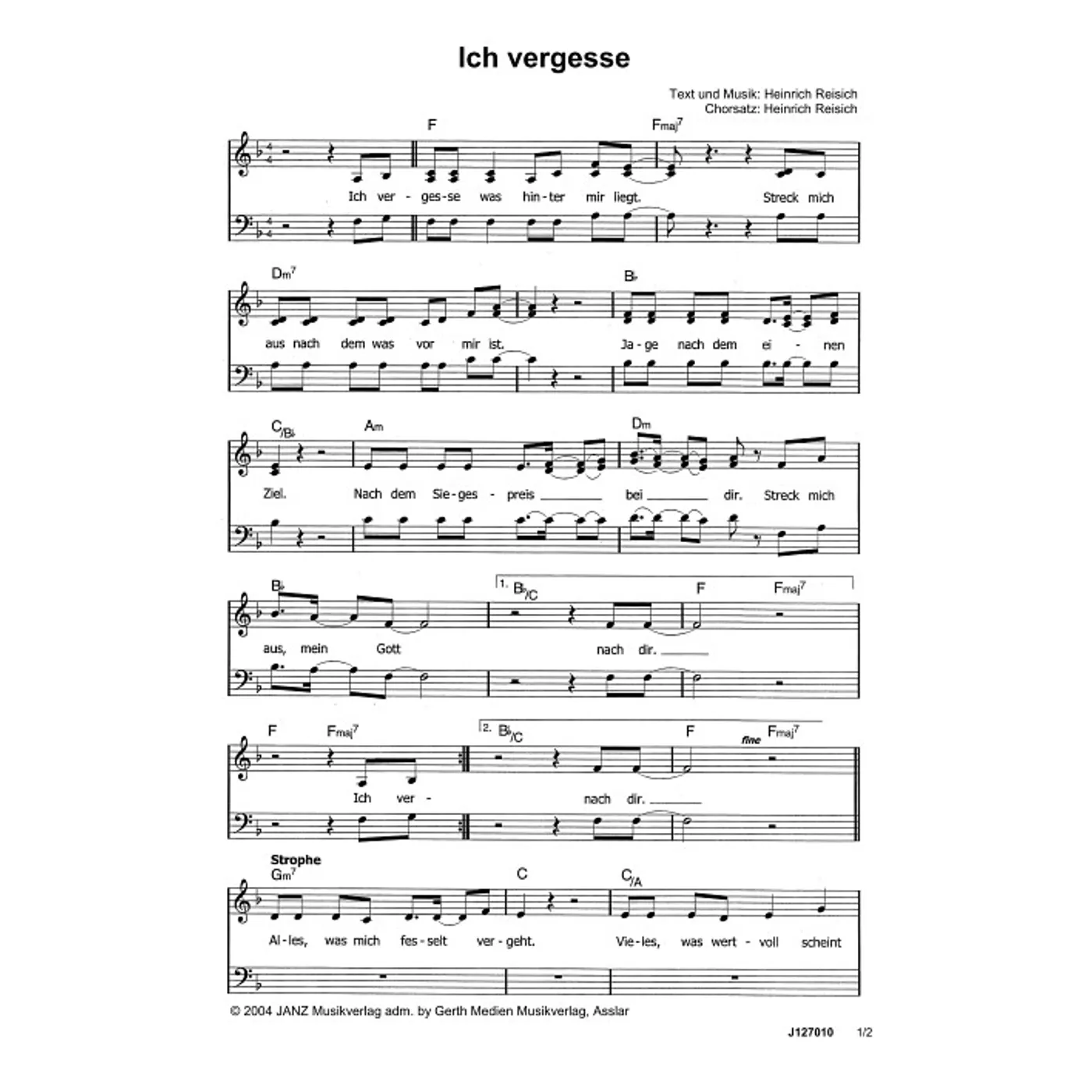 Ich vergesse (diese Variante haben Sie gerade ausgewählt) (modern, dreistimmig, gemischter Chor, mit Akkorden, F-Dur) Heinrich Reisich (Komposition, Text, Bearbeiter) |