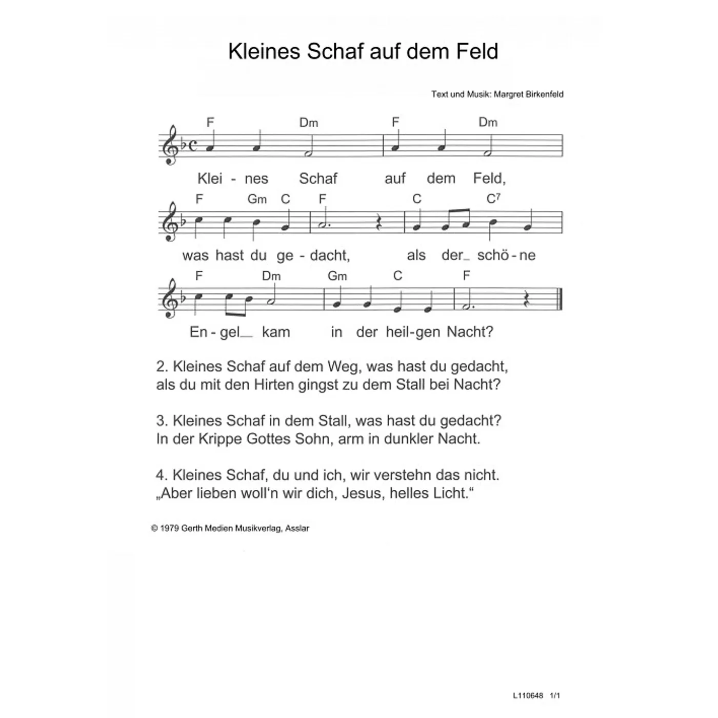 Kleines Schaf auf dem Feld (diese Variante haben Sie gerade ausgewählt) (einstimmig, mit Akkorden, F-Dur) Margret Birkenfeld (Komposition, Text) |