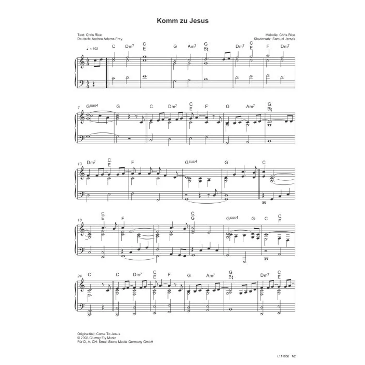 Komm zu Jesus (diese Variante haben Sie gerade ausgewählt) (Klavier, Klavierpartitur, Partituren, mit Akkorden, C-Dur) Chris Rice (Komposition, Text), Andrea Adams-Frey (Übersetzung), Samuel Jersak (Klaviersatz) |