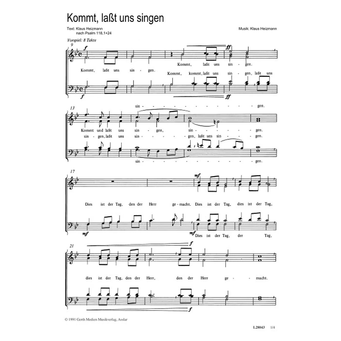 Kommt, lasst uns singen (traditionell, Klavier, gemischter Chor, vierstimmig) Klaus Heizmann (Komposition, Text, Chorsatz) | traditionell, Klavier, gemischter Chor, vierstimmig | 4,80 € |