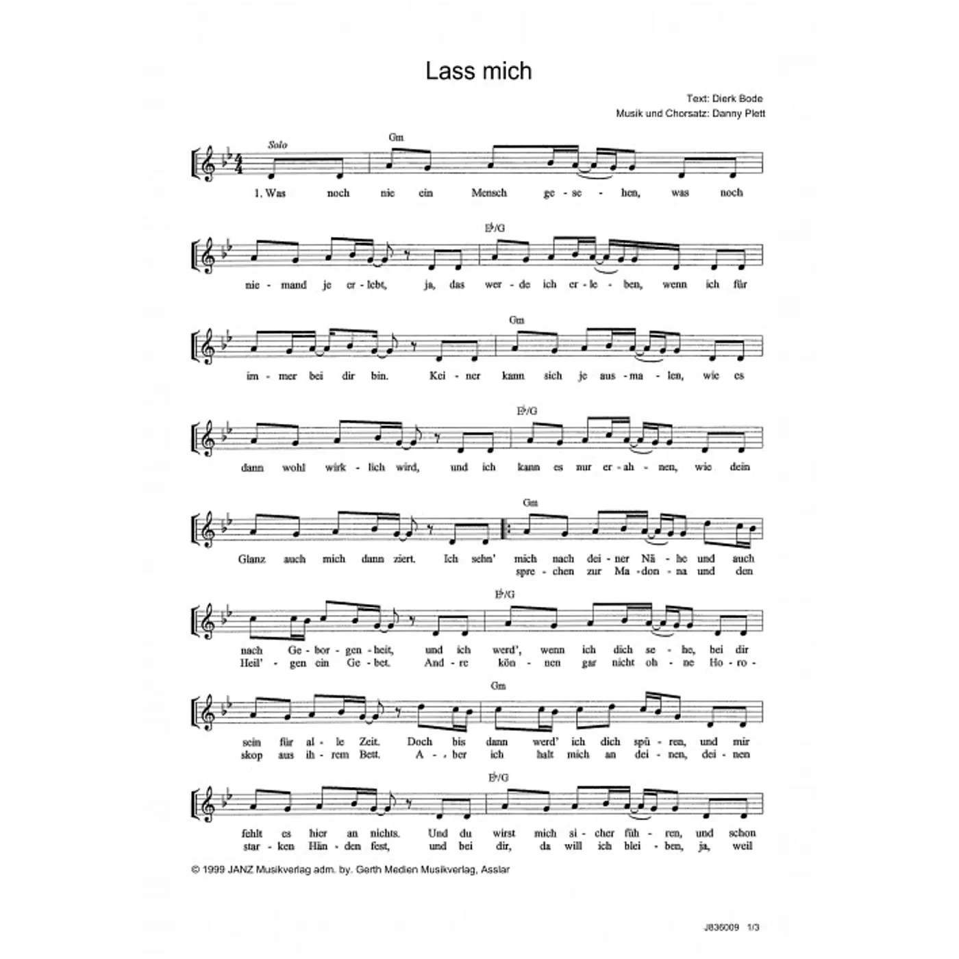Lass mich (diese Variante haben Sie gerade ausgewählt) (Solostimme, einstimmig, mit Akkorden, G-Moll) Dierk Bode (Text), Danny Plett (Komposition, Chorsatz) |