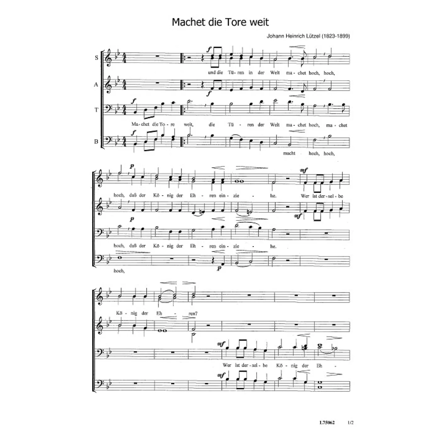 Dies ist ein Download-Artikel und kann nach dem Kauf digital heruntergeladen werden. Vorschau Johann Heinrich Lützel (Komposition) Machet die Tore weit Bläserpartitur für 4-5 stimmigen Posaunenchor (Noten - Download) Bitte beachten Sie: Downloads sind aktuell nur in Deutschland erhältlich. Bitte wählen Sie aus, für wie viele Kopien/Ausdrucke Sie eine Lizenz erwerben möchten. Die Lizenz wird entsprechend auf dem Dokument vermerkt. 2,00 € Sofort Lieferbar (per Download) Günstige Mengenpreise verfügbar Günstige Mengenpreise (DE) Kaufen Sie 2 zum Preis von je 1,90 € und sparen Sie 5% Kaufen Sie 10 zum Preis von je 1,80 € und sparen Sie 10% Kaufen Sie 25 zum Preis von je 1,70 € und sparen Sie 15% Kaufen Sie 50 zum Preis von je 1,60 € und sparen Sie 20% Kaufen Sie 100 zum Preis von je 1,50 € und sparen Sie 25% Lizenz pro Kopie/Ausdruck: Bestellen Sie den Artikel jetzt auf: Informationen zur Lizenz Details Erscheinungstermin: 26.08.2014 Verlag: Gerth Medien Artikel-Nr.: W80035338 Stil/Genre: traditionell Satz: Bläser, Partituren, Bläserpartitur Seitenzahl: 2 S. Hinweise: DIN A4 Dateigröße insg.: 109,8 Kilobyte Dieses Produkt ist preisgebunden: Ja Download-Material: L75062 (PDF) Angaben zum Hersteller nach GPSR: Gerth Medien i.d. SCM Verlagsgruppe GmbH Berliner Ring 62 35576 Wetzlar DEUTSCHLAND info@scm-verlagsgruppe.de Weitere Details Weitere Varianten Noten-Downloads Machet die Tore weit (diese Variante haben Sie gerade ausgewählt) (traditionell, Bläser, Bläserpartitur, Partituren) Johann Heinrich Lützel (Komposition) traditionell, Bläser, Bläserpartitur, Partituren 2,00 € Die Preise stellen die Einzelpreise der jeweils verfügbaren Einzeldownloads dar. Bewertungen Für dieses Produkt gibt es noch keine Rezensionen. Weitere Artikel von Johann Heinrich Lützel zur Produktseite von Machet die Tore weit Machet die Tore weit Noten - Download 1,50 € Download Alle Artikel von Johann Heinrich Lützel anzeigen Das könnte Sie auch interessieren zur Produktseite von Sicut locutus est Sicut locutus est Noten - Download 2,50 € Download