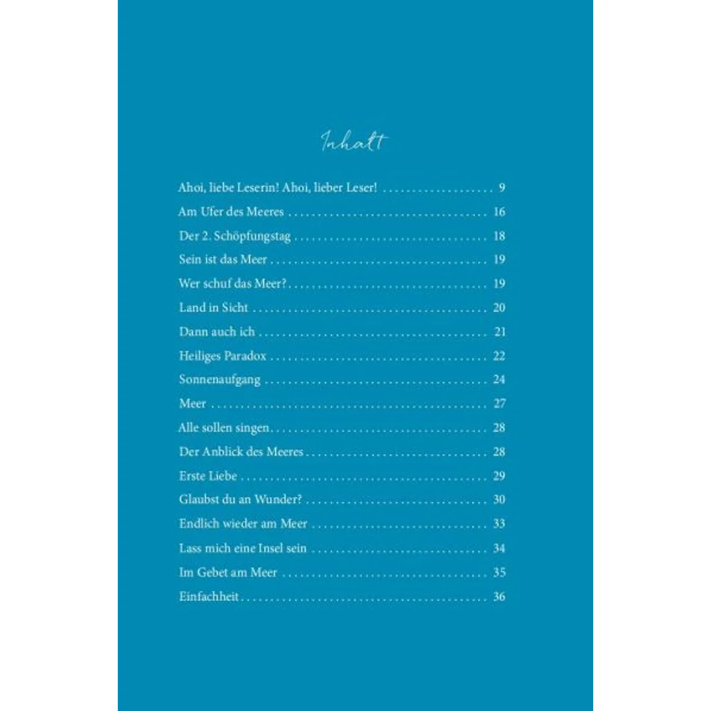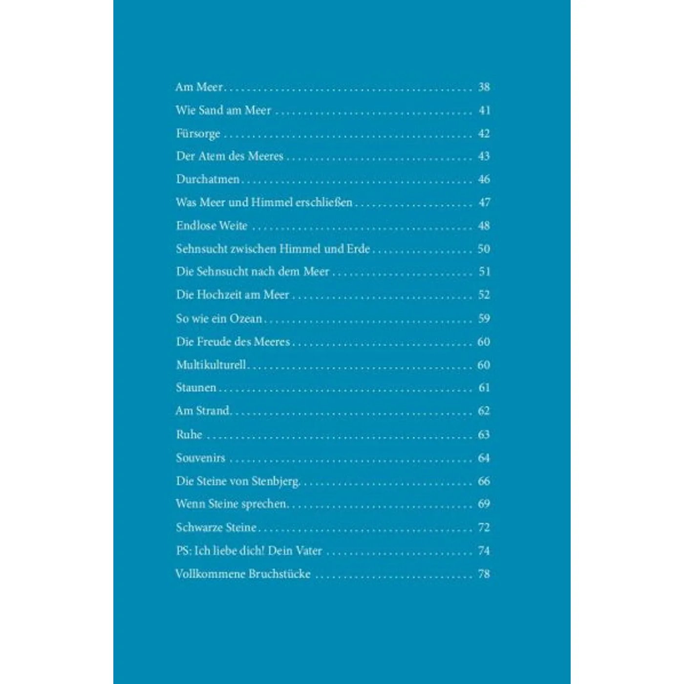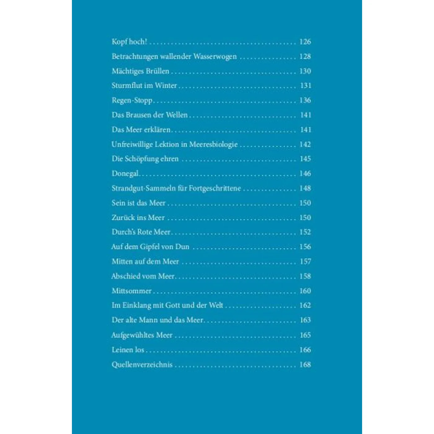 Was für ein schönes Buch! Die Texte so vielgestaltig wie das Meer, Kurzgeschichten, Nachdenkliches, Poetisches, Bibelverse, Liedstrophen. Alle durchdrungen von der Sehnsucht und Begeisterung für Meer, Wind und Weite.