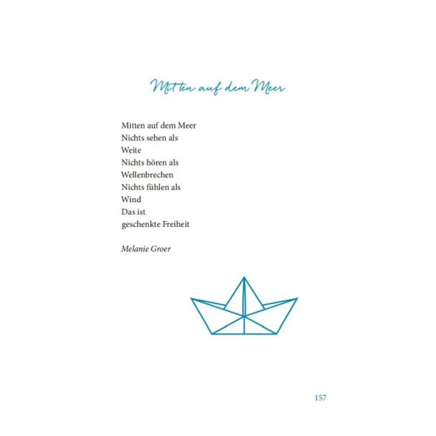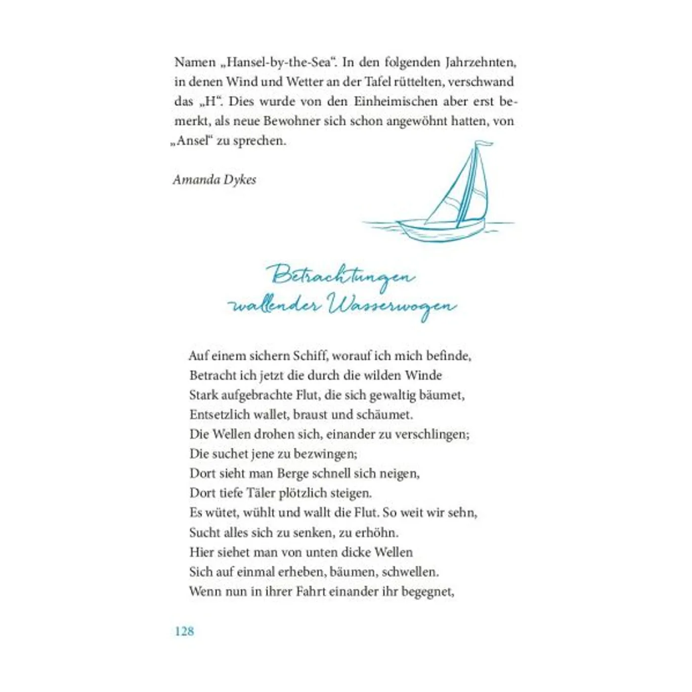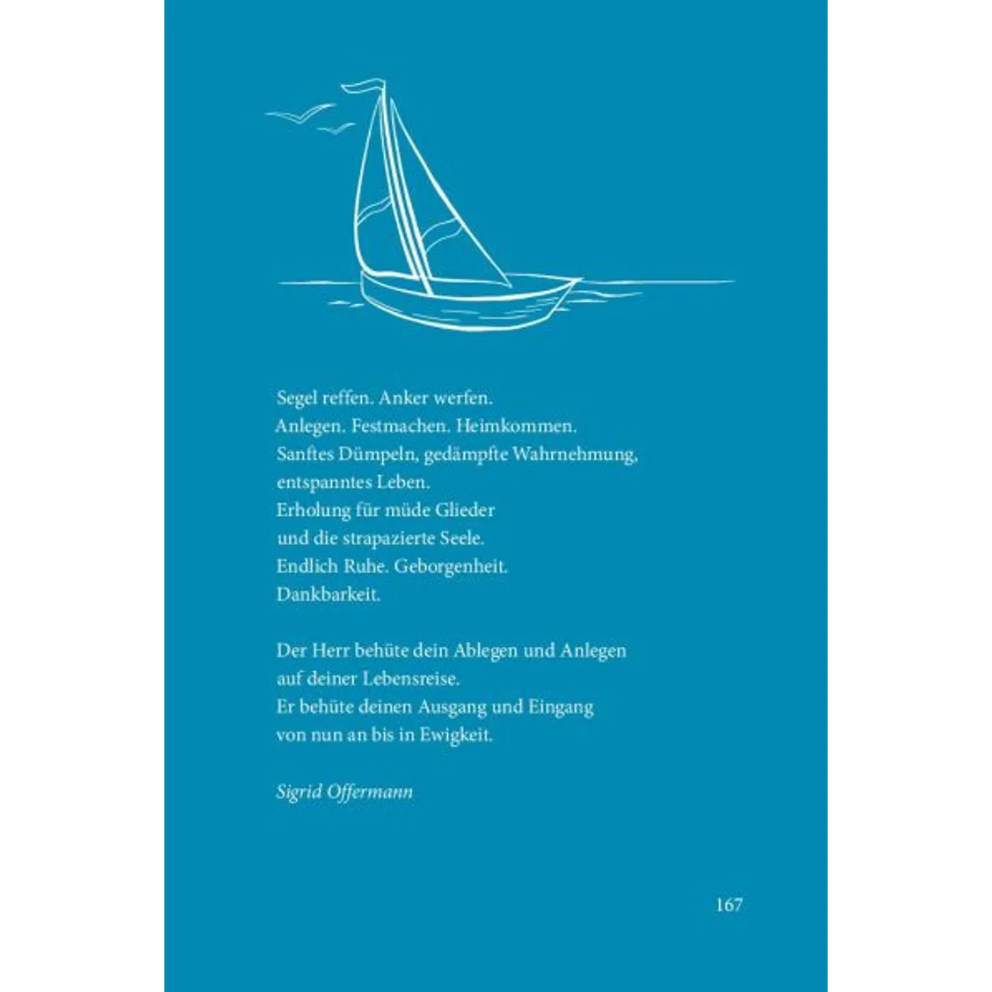 Was für ein schönes Buch! Die Texte so vielgestaltig wie das Meer, Kurzgeschichten, Nachdenkliches, Poetisches, Bibelverse, Liedstrophen. Alle durchdrungen von der Sehnsucht und Begeisterung für Meer, Wind und Weite.