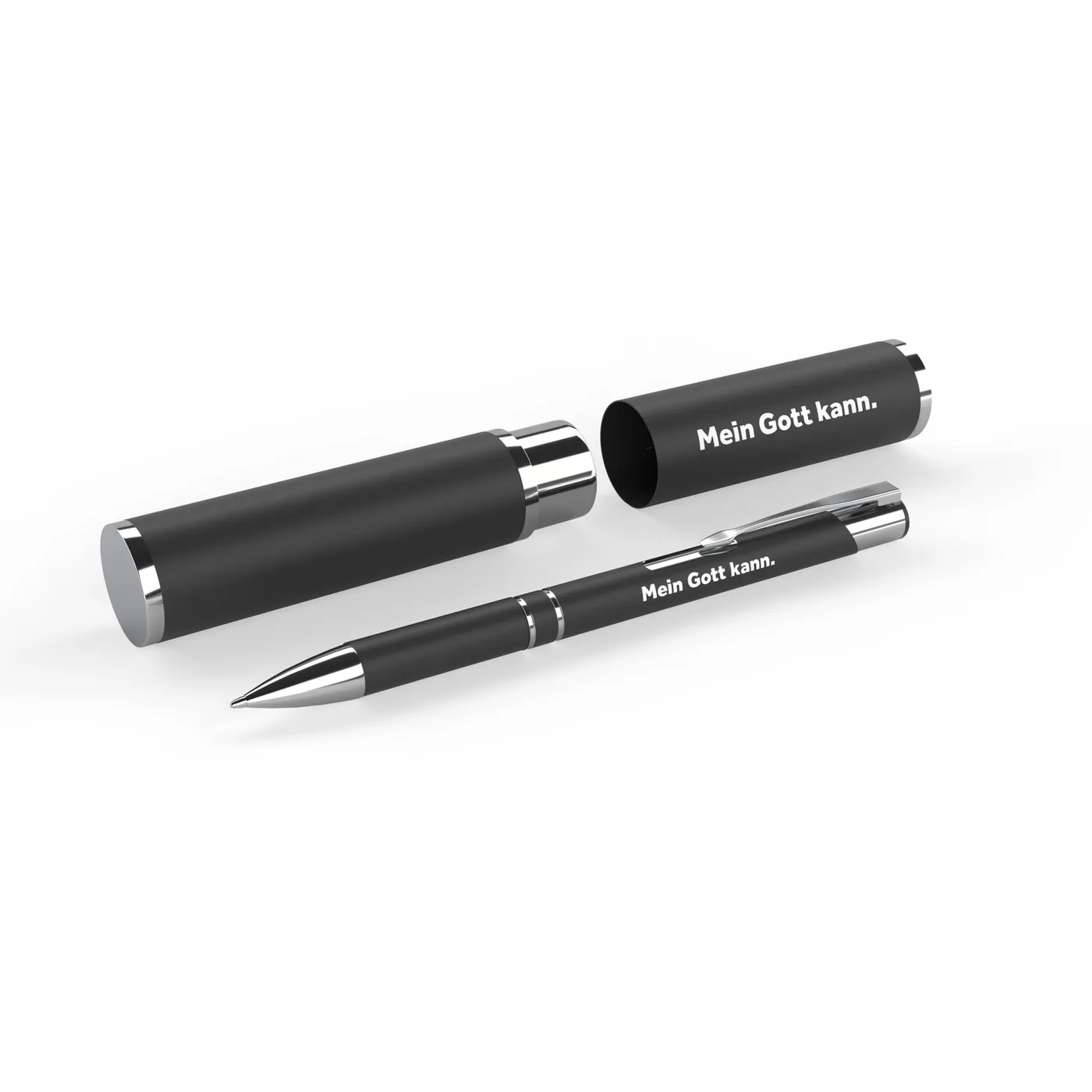Mein Gott kann. – Kugelschreiber im Etui (Schreibwaren) Der schöne Kugelschreiber mit aufgedruckter Botschaft ist der perfekte Begleiter für jeden Tag. In dem ungewöhnlichen runden Etui ist der Stift ein ideales Geschenk zum Geburtstag oder zu Weihnachten oder einfach nur so für alle Schreibbegeisterten.Stiftfarbe: schwarzMine: schwarz 7,95 € Lieferung nach Erscheinen Dieser Titel ist voraussichtlich ab Anfang März 2026 lieferbar Artikel jetzt vormerken auf: Details Verlag: Gerth Medien Artikel-Nr.: 558471500 EAN: 4029856847153 Sachgebiet: Schreibgeräte Hinweise: Minenfarbe: schwarz Maße: 2,3 x 15 cm Gewicht: 44g Download-Material: Cover-Download Angaben zum Hersteller nach GPSR: Gerth Medien i.d. SCM Verlagsgruppe GmbH Berliner Ring 62 35576 Wetzlar DEUTSCHLAND info@scm-verlagsgruppe.de Weitere Details Bewertungen Für dieses Produkt gibt es noch keine Rezensionen.
