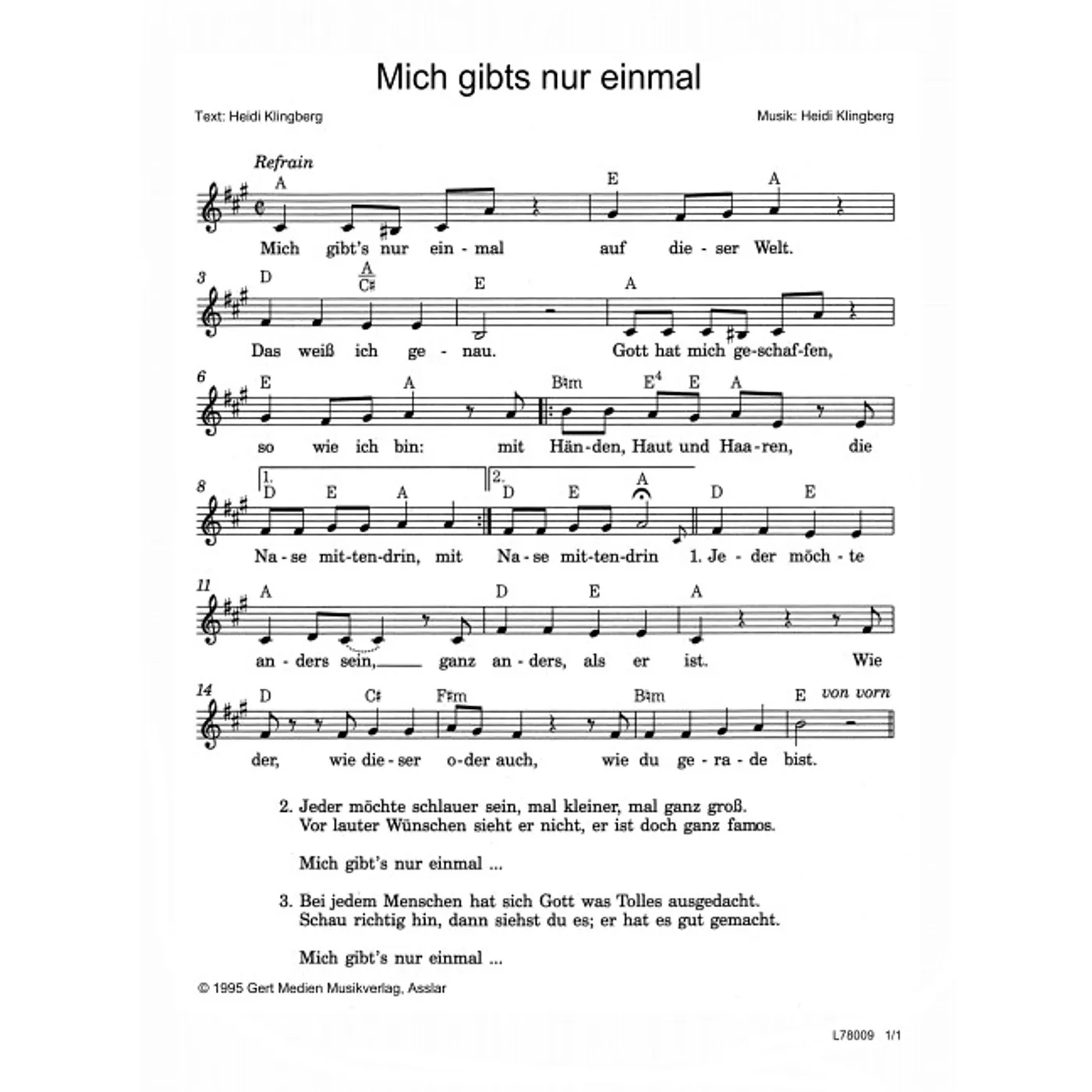 Mich gibts nur einmal (diese Variante haben Sie gerade ausgewählt) (einstimmig, mit Akkorden, A-Dur) Heidi Klingberg (Komposition, Text) |