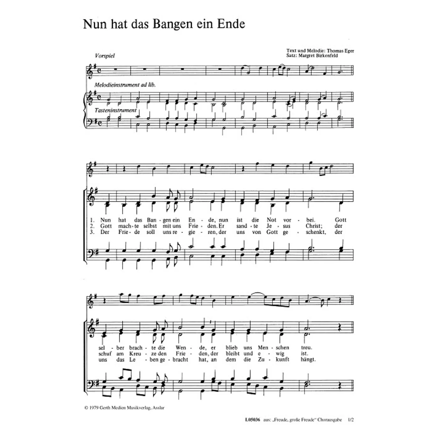 Nun hat das Bangen ein Ende (diese Variante haben Sie gerade ausgewählt) (traditionell, gemischter Chor, vierstimmig) Thomas Eger (Komposition, Text), Margret Birkenfeld (Bearbeiter) |