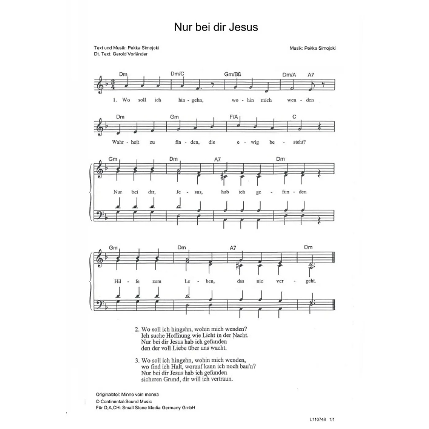 Dies ist ein Download-Artikel und kann nach dem Kauf digital heruntergeladen werden. Vorschau Pekka Simojoki (Komposition, Text) Gerold Vorländer (Übersetzung) Nur bei dir Jesus Gemischter Chor SATB (Noten - Download) Bitte beachten Sie: Downloads sind aktuell nur in Deutschland erhältlich. Bitte wählen Sie aus, für wie viele Kopien/Ausdrucke Sie eine Lizenz erwerben möchten. Die Lizenz wird entsprechend auf dem Dokument vermerkt. 1,50 € Sofort Lieferbar (per Download) Günstige Mengenpreise verfügbar Günstige Mengenpreise (DE) Kaufen Sie 2 zum Preis von je 1,43 € und sparen Sie 5% Kaufen Sie 10 zum Preis von je 1,35 € und sparen Sie 10% Kaufen Sie 25 zum Preis von je 1,28 € und sparen Sie 15% Kaufen Sie 50 zum Preis von je 1,20 € und sparen Sie 20% Kaufen Sie 100 zum Preis von je 1,13 € und sparen Sie 25% Lizenz pro Kopie/Ausdruck: Bestellen Sie den Artikel jetzt auf: Informationen zur Lizenz Details Erscheinungstermin: 29.02.2016 Verlag: Small Stone Media Artikel-Nr.: W80028709 Originaltitel: Minne Voin Mennä Tonart: D-Moll Stil/Genre: Gemeindelied, modern Satz: gemischter Chor, mit Akkorden Seitenzahl: 1 S. Hinweise: DIN A4 Dateigröße insg.: 647,8 Kilobyte Dieses Produkt ist preisgebunden: Ja Download-Material: L110748 (PDF) Angaben zum Hersteller nach GPSR: Gerth Medien i.d. SCM Verlagsgruppe GmbH Berliner Ring 62 35576 Wetzlar DEUTSCHLAND info@scm-verlagsgruppe.de Weitere Details Weitere Varianten Noten-Downloads Nur bei dir Jesus (diese Variante haben Sie gerade ausgewählt) (Gemeindelied, modern, gemischter Chor, mit Akkorden, D-Moll) Pekka Simojoki (Komposition, Text), Gerold Vorländer (Übersetzung) Gemeindelied, modern, gemischter Chor, mit Akkorden, D-Moll 1,50 € Die Preise stellen die Einzelpreise der jeweils verfügbaren Einzeldownloads dar. Bewertungen Für dieses Produkt gibt es noch keine Rezensionen. Weitere Artikel von Pekka Simojoki zur Produktseite von Halleluja, seht was Gott getan Halleluja, seht was Gott getan Noten - Download 1,50 € Download zur Produktseite von Das Lied vom Teilen Das Lied vom Teilen Noten - Download 1,50 € Download zur Produktseite von Geh den Weg nicht allein Geh den Weg nicht allein Noten - Download 1,50 € Download zur Produktseite von Einmal wird der Himmel singen Einmal wird der Himmel singen Noten - Download 1,50 € Download zur Produktseite von Jede Stunde unsres Lebens Jede Stunde unsres Lebens Noten - Download 1,50 € Download zur Produktseite von Ihr seid nicht umsonst gekommen Ihr seid nicht umsonst gekommen Noten - Download 1,50 € Download zur Produktseite von Ja, ich glaube Ja, ich glaube Noten - Download 1,50 € Download zur Produktseite von Rühr mich an mit deinem Wort Rühr mich an mit deinem Wort Noten - Download 1,50 € Download zur Produktseite von Mir ist vergeben Mir ist vergeben Noten - Download 1,50 € Download zur Produktseite von Klagemauer Klagemauer Noten - Download 1,50 € Download zur Produktseite von Wie ein helles Feuer Wie ein helles Feuer Noten - Download 1,50 € Download zur Produktseite von Aus den Schatten der Welt Aus den Schatten der Welt Noten - Download 1,50 € Download Alle Artikel von Pekka Simojoki anzeigen Das könnte Sie auch interessieren zur Produktseite von Jesus, deine Hände Jesus, deine Hände Noten - Download 1,50 € Download zur Produktseite von Jesus, deine Hände Jesus, deine Hände Noten - Download 1,50 € Download zur Produktseite von In deinen Armen In deinen Armen Noten - Download 1,50 € Download zur Produktseite von Gott hört dein Gebet Gott hört dein Gebet Noten - Download 1,50 € Download zur Produktseite von Demo Gracias Demo Gracias Noten - Download 1,50 € Download