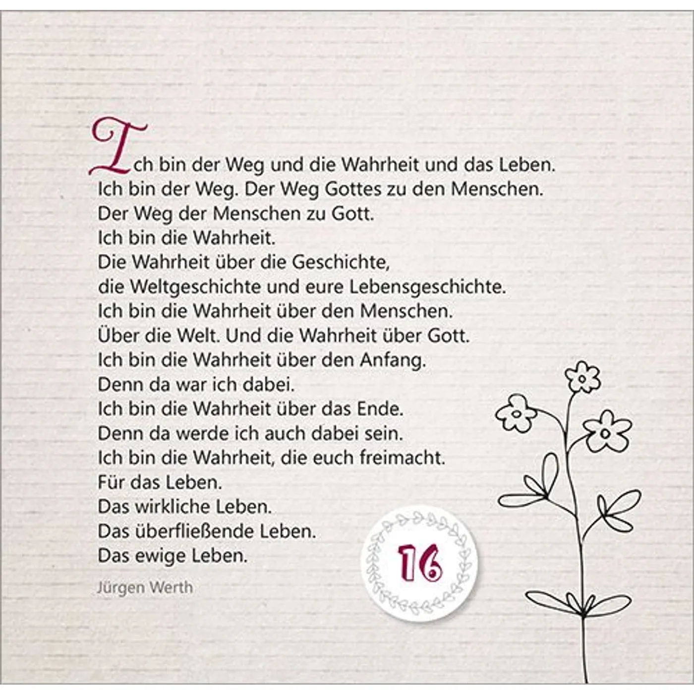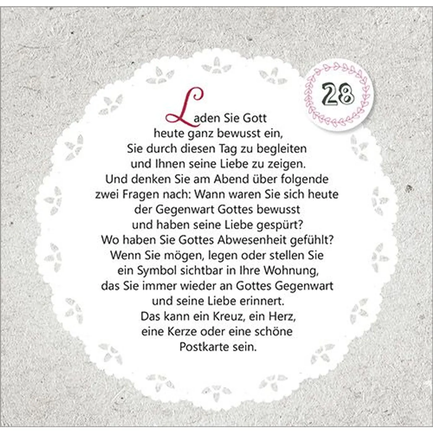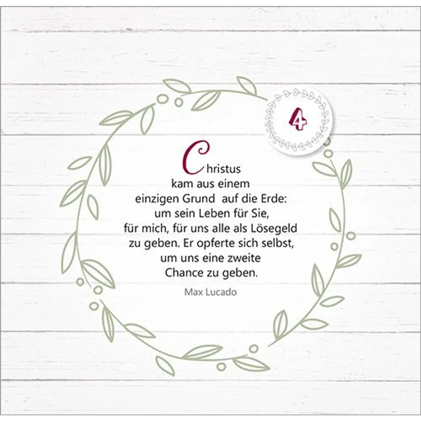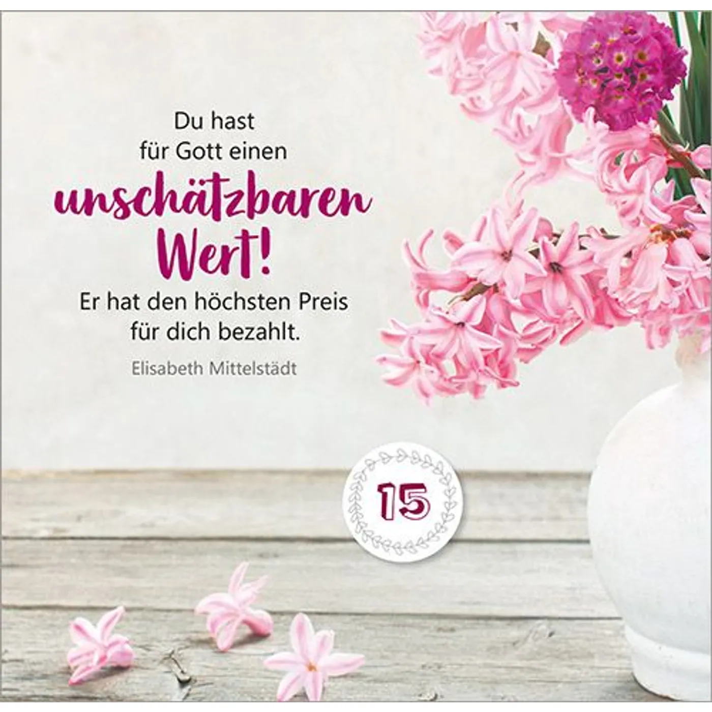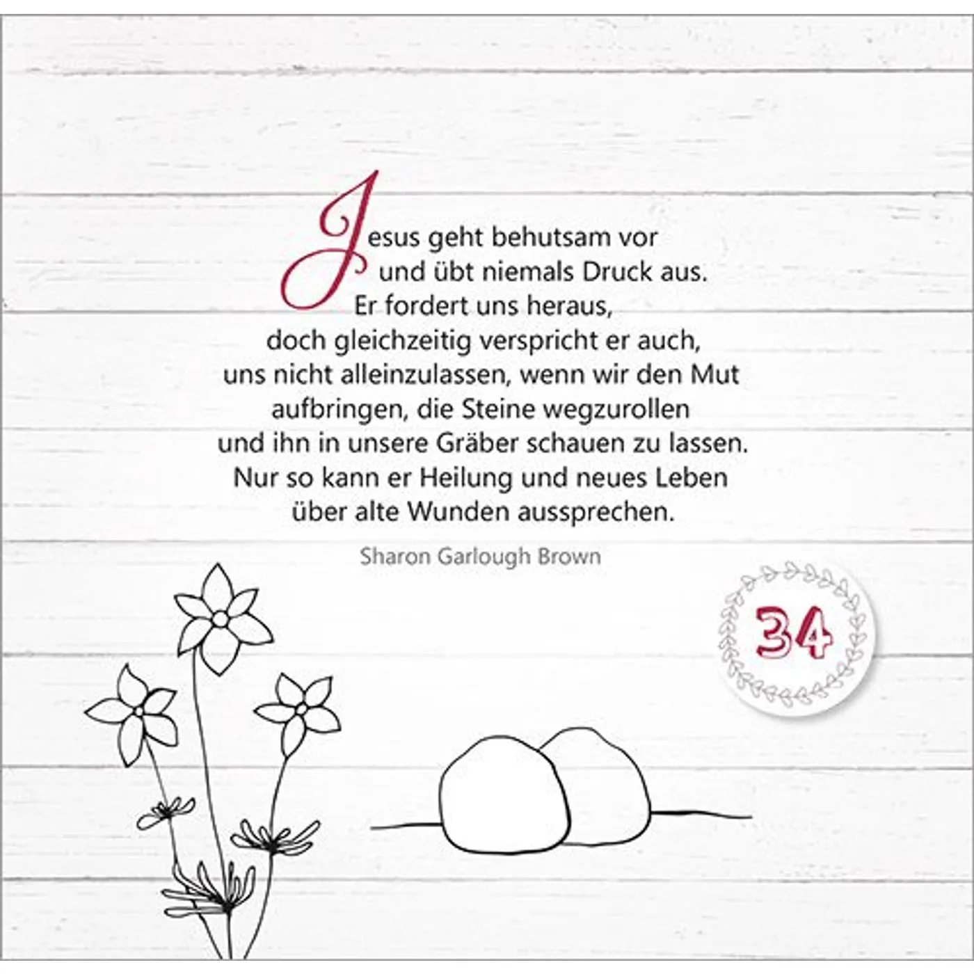 Mit Texten und Zitaten von Max Lucado, John Ortberg, Jürgen Werth, Sharon Garlough Brown, Andi Weiss, Francine Rivers, Hans-Joachim Eckstein, Thomas Joussen, Martin Luther, Paul Gerhardt und anderen.
