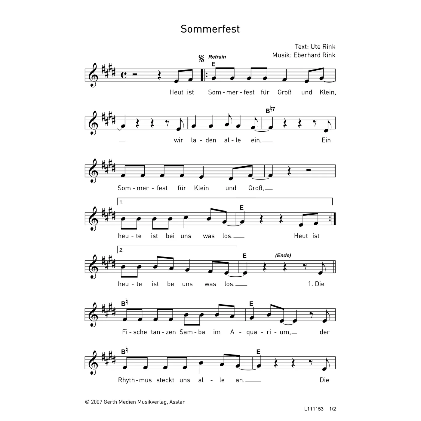 Sommerfest (diese Variante haben Sie gerade ausgewählt) (einstimmig, mit Akkorden, E-Dur) Eberhard Rink (Komposition), Ute Rink (Text) |