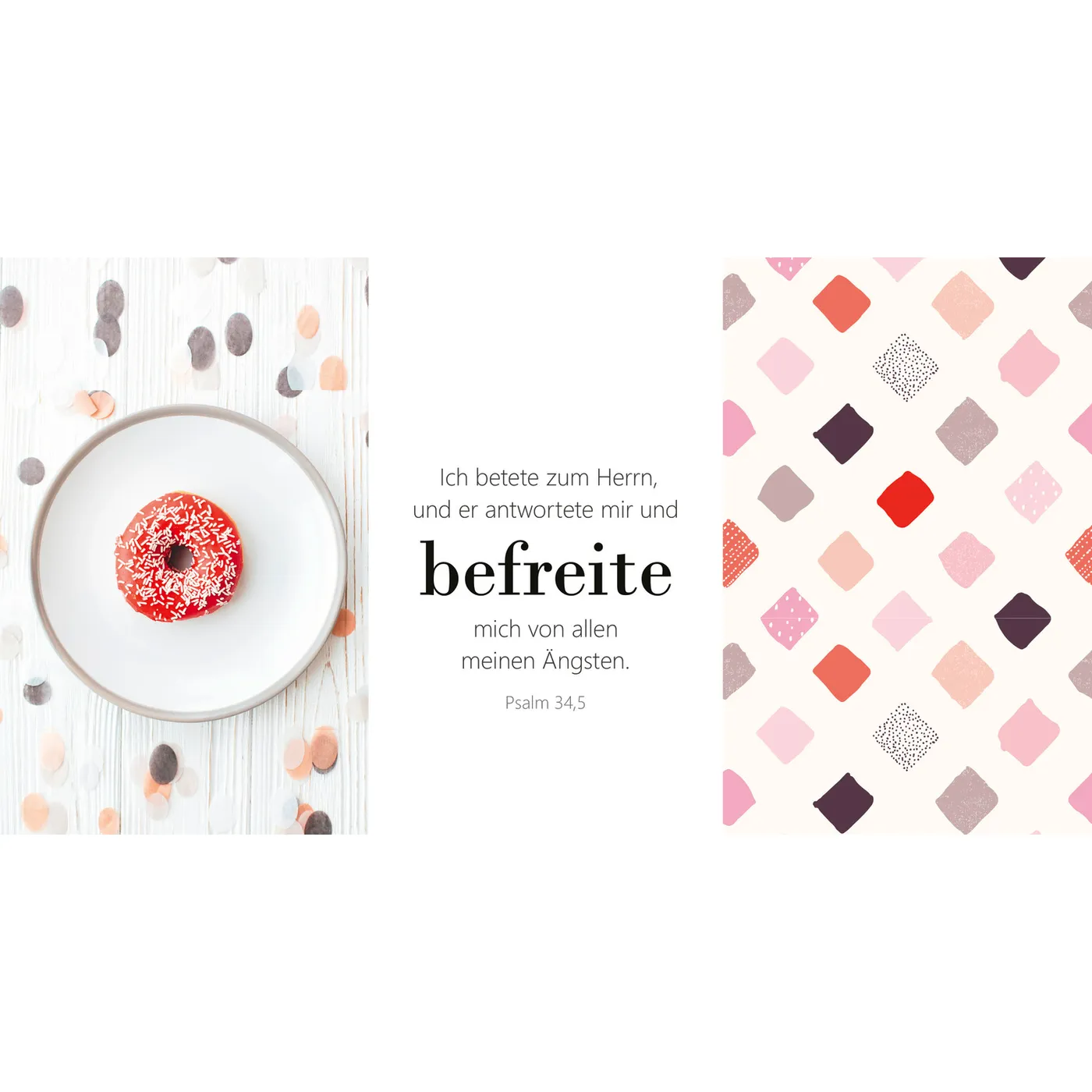 Ich habe jahrelang den Kalender "Dreiklang" verwendet, den es jetzt leider nicht mehr gibt. Stattdessen hat der Verlag nun dieses Aufstellbuch herausgebracht, das sogar noch besser ist. Hier gibt es nicht nur 3 x 12 Seiten (für jeden Monat), sondern sogar 3 x 30 Seiten. Hier kann man also noch mehr Bilder und Bibelverse zusammenstellen. Und die Bilder sind zum Teil wirklich ungewöhnlich - sie bieten neue Perspektiven, fröhliche Farben und vieles mehr ...