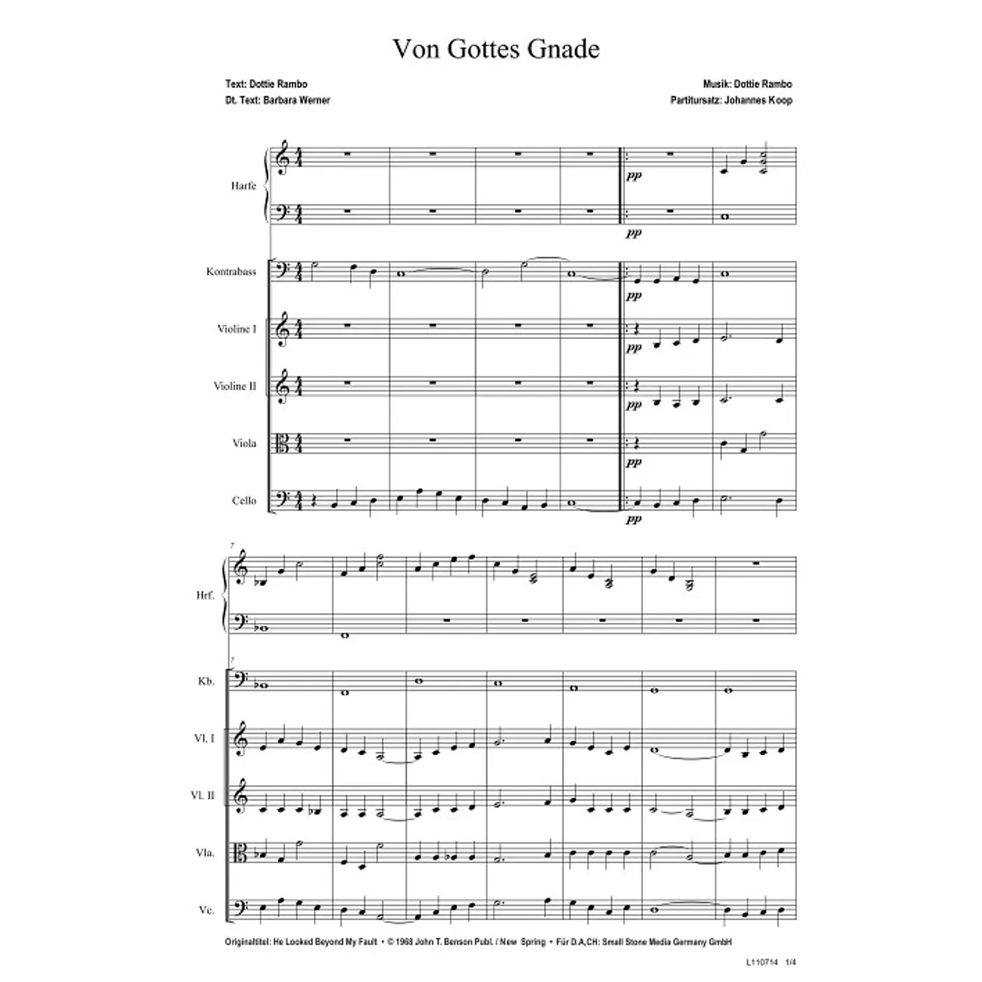 Dies ist ein Download-Artikel und kann nach dem Kauf digital heruntergeladen werden. Vorschau Dottie Rambo (Komposition, Text) Johannes Koop (Bearbeiter) Barbara Werner (Übersetzung) Von Gottes Gnade Partitur für Harfe / Kontrabass / Violine 1+2 / Viola / Cello (Noten - Download) Bitte beachten Sie: Downloads sind aktuell nur in Deutschland erhältlich. Bitte wählen Sie aus, für wie viele Kopien/Ausdrucke Sie eine Lizenz erwerben möchten. Die Lizenz wird entsprechend auf dem Dokument vermerkt. 5,50 € Sofort Lieferbar (per Download) Günstige Mengenpreise verfügbar Günstige Mengenpreise (DE) Kaufen Sie 2 zum Preis von je 5,23 € und sparen Sie 5% Kaufen Sie 10 zum Preis von je 4,95 € und sparen Sie 10% Kaufen Sie 25 zum Preis von je 4,68 € und sparen Sie 15% Kaufen Sie 50 zum Preis von je 4,40 € und sparen Sie 20% Kaufen Sie 100 zum Preis von je 4,13 € und sparen Sie 25% Lizenz pro Kopie/Ausdruck: Bestellen Sie den Artikel jetzt auf: Informationen zur Lizenz Details Erscheinungstermin: 05.01.2016 Verlag: Small Stone Media Artikel-Nr.: W80028674 Originaltitel: He Looked Beyond My Fault And Saw My Need Stil/Genre: traditionell Satz: mit Akkorden, Orchester Seitenzahl: 4 S. Hinweise: DIN A4 Dateigröße insg.: 85,1 Kilobyte Dieses Produkt ist preisgebunden: Ja Download-Material: L110714 (PDF) Angaben zum Hersteller nach GPSR: Gerth Medien i.d. SCM Verlagsgruppe GmbH Berliner Ring 62 35576 Wetzlar DEUTSCHLAND info@scm-verlagsgruppe.de Weitere Details Weitere Varianten Noten-Downloads Von Gottes Gnade (diese Variante haben Sie gerade ausgewählt) (traditionell, Orchester, mit Akkorden) Dottie Rambo (Komposition, Text), Johannes Koop (Bearbeiter), Barbara Werner (Übersetzung) traditionell, Orchester, mit Akkorden 5,50 € Die Preise stellen die Einzelpreise der jeweils verfügbaren Einzeldownloads dar. Bewertungen Für dieses Produkt gibt es noch keine Rezensionen. Weitere Artikel von Dottie Rambo zur Produktseite von Von Gottes Gnade Von Gottes Gnade Noten - Download 1,50 € Download zur Produktseite von I Go To The Rock I Go To The Rock Noten - Download 5,50 € Download zur Produktseite von Von Gottes Gnade Von Gottes Gnade Noten - Download 5,50 € Download zur Produktseite von Von Gottes Gnade Von Gottes Gnade Noten - Download 2,50 € Download Alle Artikel von Dottie Rambo anzeigen Das könnte Sie auch interessieren zur Produktseite von Dich rühmt der Morgen Dich rühmt der Morgen Noten - Download 2,50 € Download zur Produktseite von Sie banden Jesu Hände Sie banden Jesu Hände Noten - Download 1,50 € Download