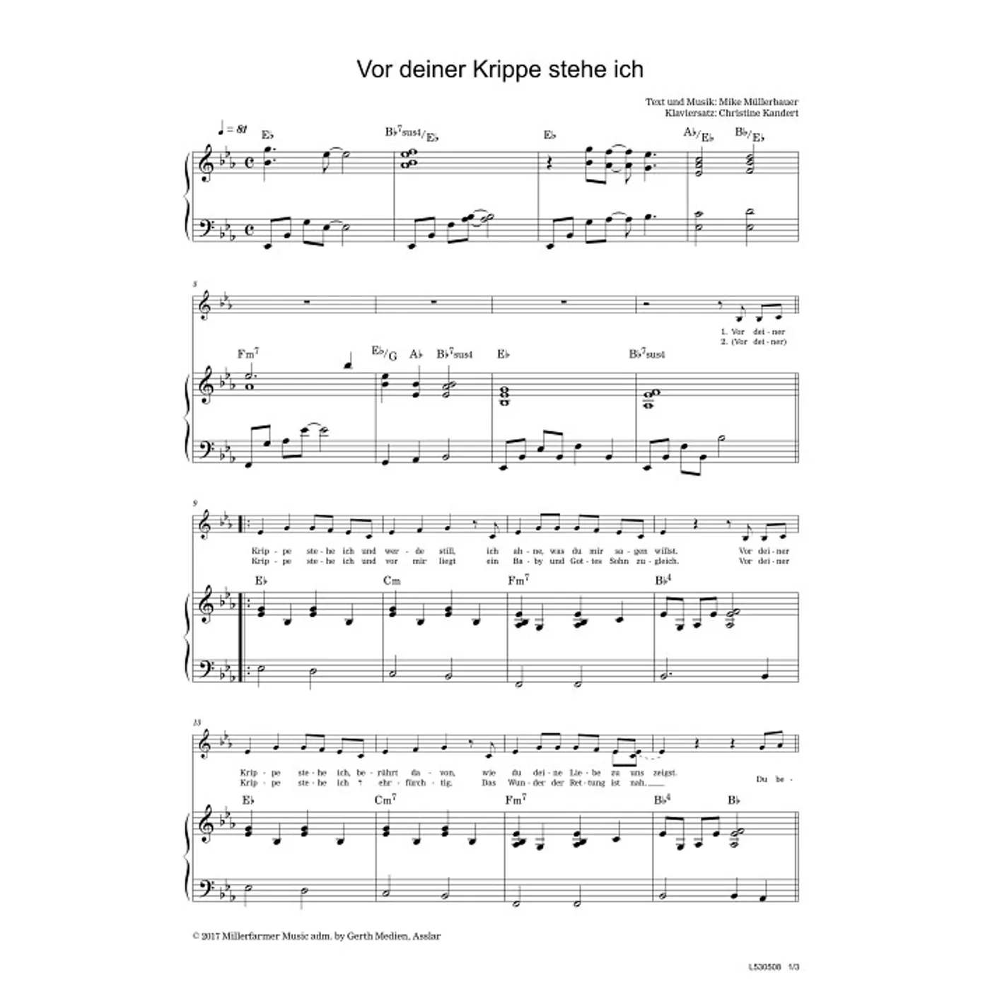 Vor deiner Krippe stehe ich (diese Variante haben Sie gerade ausgewählt) (Klavierpartitur, Partituren, einstimmig, mit Akkorden, Es-Dur) Mike Müllerbauer (Komposition, Text), Christine Kandert (Klaviersatz) |