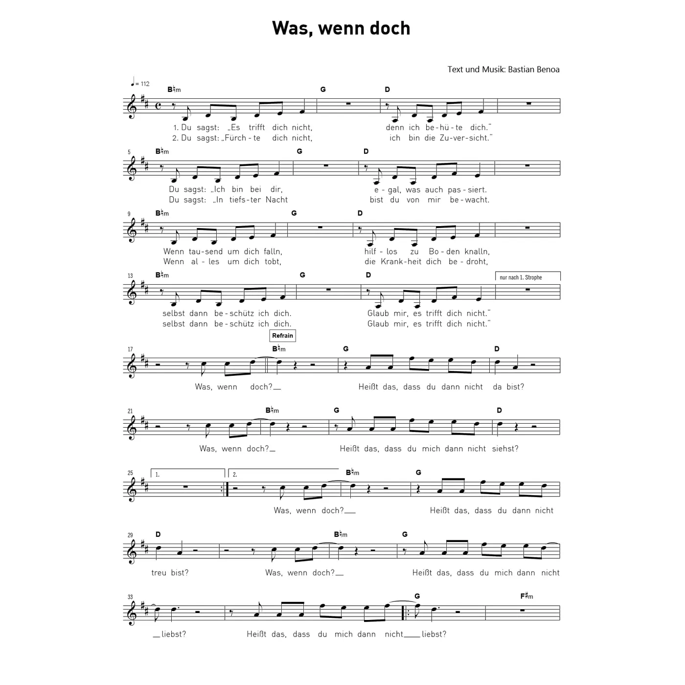 Was wenn doch (diese Variante haben Sie gerade ausgewählt) (Pop & Rock, einstimmig, D-Dur) Bastian Benoa (Text, Melodie) |