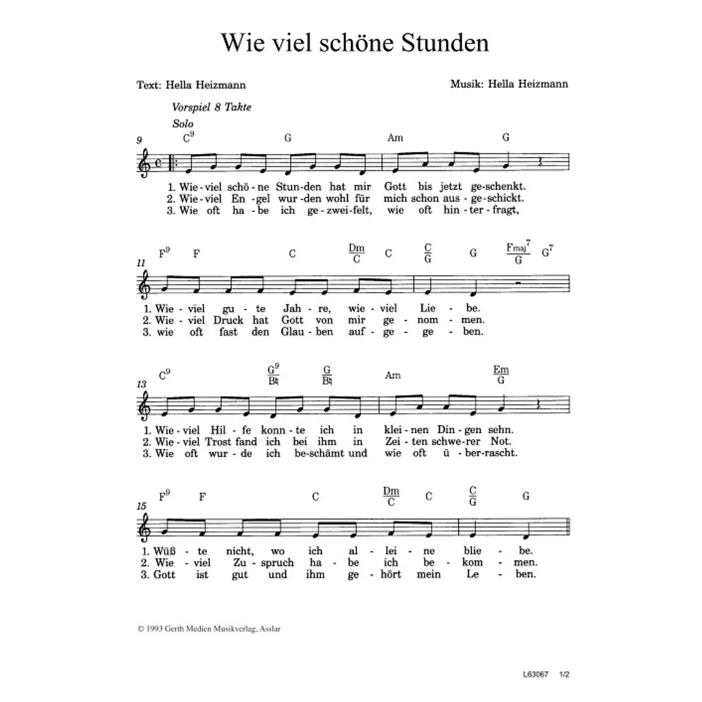 Wie viel schöne Stunden (diese Variante haben Sie gerade ausgewählt) (modern, Frauenchor, Solostimme, dreistimmig, mit Akkorden, C-Dur) Hella Heizmann (Komposition, Text) |