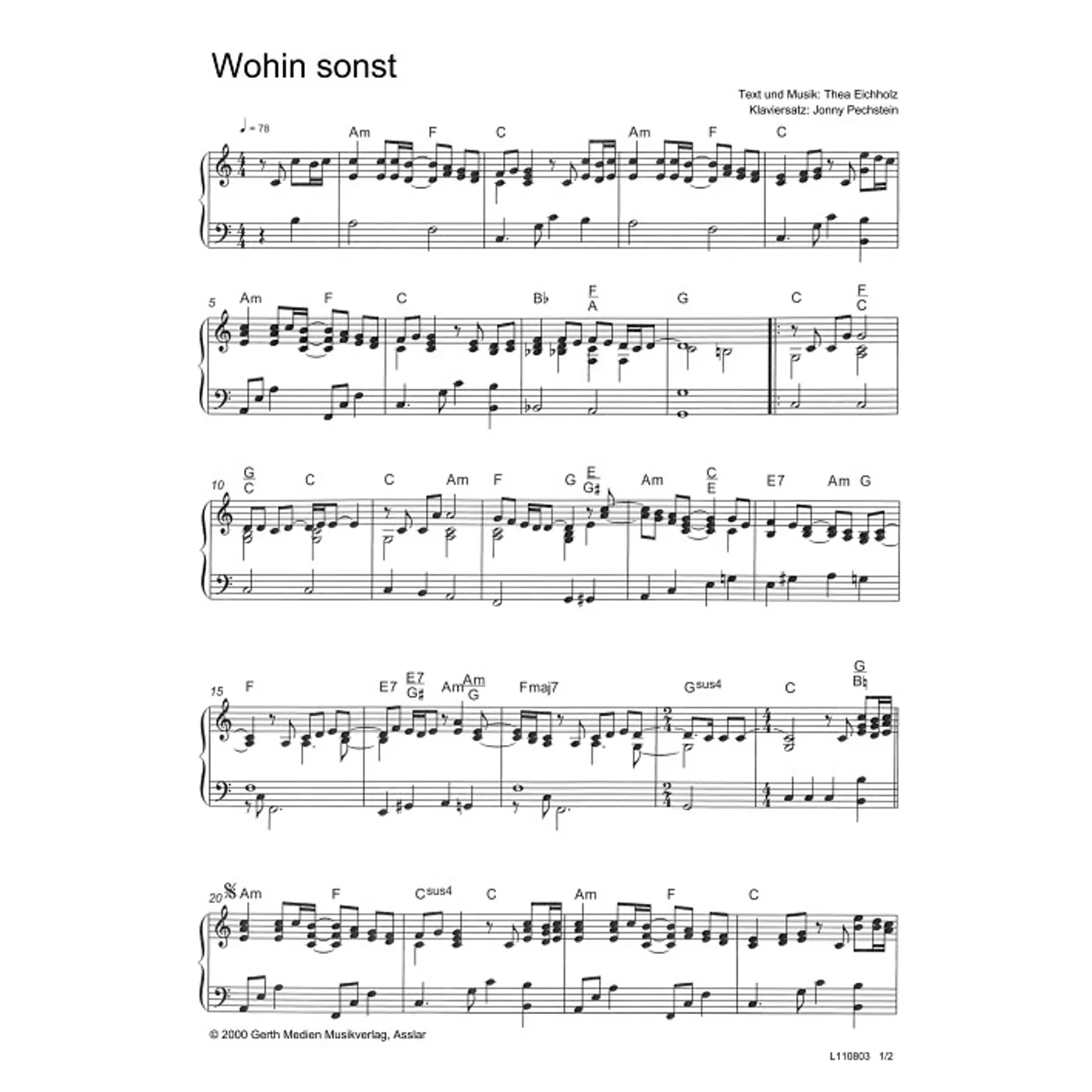 Wohin sonst (diese Variante haben Sie gerade ausgewählt) (modern, Klavier, Klavierpartitur, Partituren, mit Akkorden, C-Dur) Thea Eichholz (Komposition, Text), Jonny Pechstein (Klaviersatz) |
