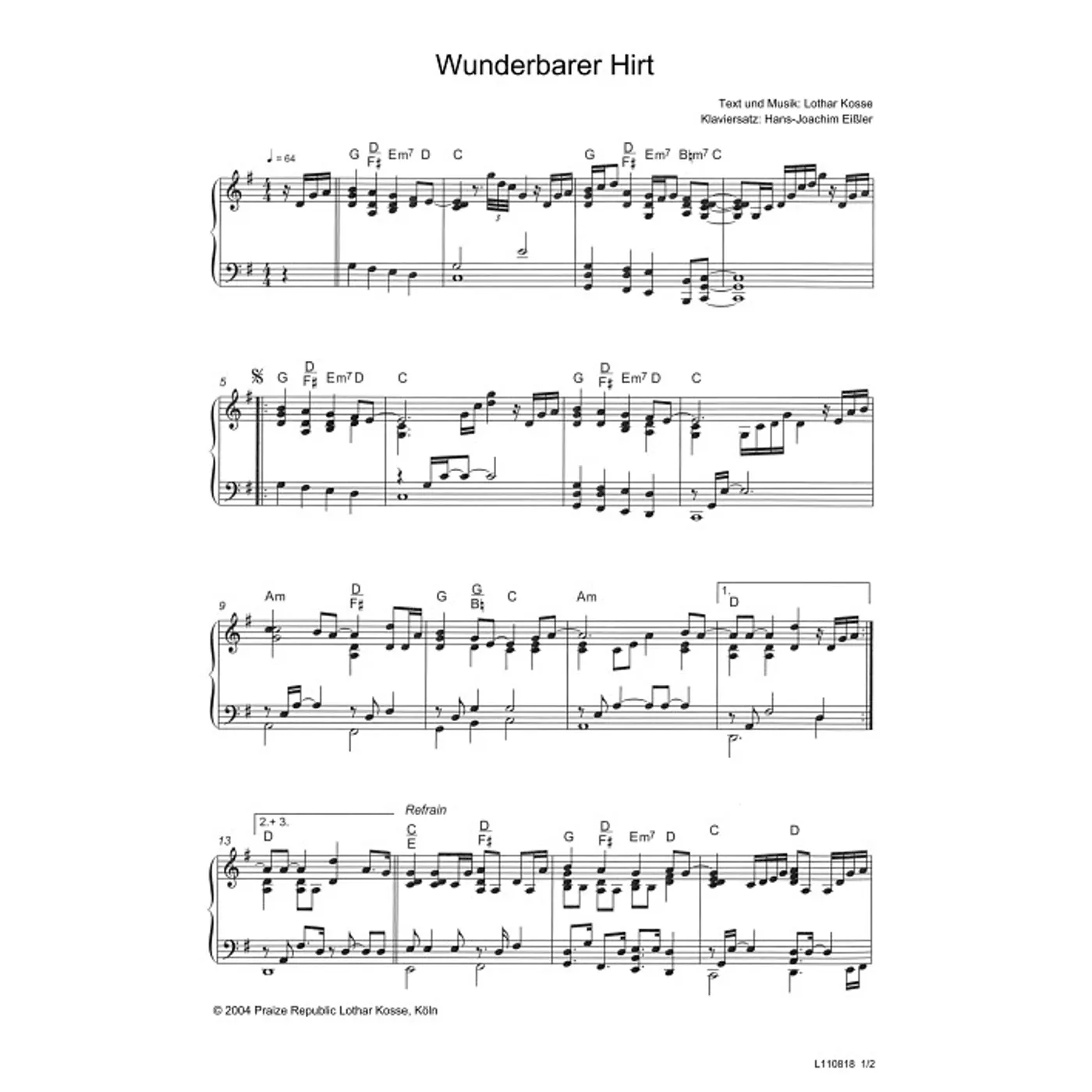 Dies ist ein Download-Artikel und kann nach dem Kauf digital heruntergeladen werden. Vorschau Lothar Kosse (Komposition, Text) Hans-Joachim Eißler (Klaviersatz) Wunderbarer Hirt Klavierpartitur (Noten - Download) Bitte beachten Sie: Downloads sind aktuell nur in Deutschland erhältlich. Bitte wählen Sie aus, für wie viele Kopien/Ausdrucke Sie eine Lizenz erwerben möchten. Die Lizenz wird entsprechend auf dem Dokument vermerkt. Noten - Download Andere Varianten Noten - Download MP3-Track - Download Wunderbarer Hirt Alle Varianten anzeigen und vergleichen 2,80 € Sofort Lieferbar (per Download) Günstige Mengenpreise verfügbar Günstige Mengenpreise (DE) Kaufen Sie 2 zum Preis von je 2,66 € und sparen Sie 5% Kaufen Sie 10 zum Preis von je 2,52 € und sparen Sie 10% Kaufen Sie 25 zum Preis von je 2,38 € und sparen Sie 15% Kaufen Sie 50 zum Preis von je 2,24 € und sparen Sie 20% Kaufen Sie 100 zum Preis von je 2,10 € und sparen Sie 25% Lizenz pro Kopie/Ausdruck: Bestellen Sie den Artikel jetzt auf: Informationen zur Lizenz Details Erscheinungstermin: 10.05.2016 Verlag: Gerth Medien Artikel-Nr.: W80028779 Tonart: G-Dur Stil/Genre: Gemeindelied, modern Satz: Klavier, mit Akkorden, Partituren, Klavierpartitur Seitenzahl: 2 S. Hinweise: DIN A4 Dateigröße insg.: 559,8 Kilobyte Dieses Produkt ist preisgebunden: Ja Download-Material: L110818 (PDF) Angaben zum Hersteller nach GPSR: Gerth Medien i.d. SCM Verlagsgruppe GmbH Berliner Ring 62 35576 Wetzlar DEUTSCHLAND info@scm-verlagsgruppe.de Weitere Details Weitere Varianten Noten-Downloads Wunderbarer Hirt (diese Variante haben Sie gerade ausgewählt) (Gemeindelied, modern, Klavier, Klavierpartitur, Partituren, mit Akkorden, G-Dur) Lothar Kosse (Komposition, Text), Hans-Joachim Eißler (Klaviersatz) Gemeindelied, modern, Klavier, Klavierpartitur, Partituren, mit Akkorden, G-Dur 2,80 € Wunderbarer Hirt (Gemeindelied, modern, gemischter Chor, mit Akkorden, vierstimmig, G-Dur) Lothar Kosse (Komposition, Text), Hans-Joachim Eißler (Chorsatz) Gemeindelied, modern, gemischter Chor, mit Akkorden, vierstimmig, G-Dur 1,50 € MP3-Downloads Wunderbarer Hirt Albert Frey, Andrea Adams-Frey 0,99 € Die Preise stellen die Einzelpreise der jeweils verfügbaren Einzeldownloads dar. Bewertungen Für dieses Produkt gibt es noch keine Rezensionen. Weitere Artikel von Lothar Kosse zur Produktseite von Home Sessions (Noten-Set) Home Sessions (Noten-Set) Noten - Download 7,50 € Download zur Produktseite von Hefe (Playback ohne Backings) Hefe (Playback ohne Backings) MP3-Album - Download 2,99 € Download zur Produktseite von Wunderbarer Hirt Wunderbarer Hirt Noten - Download 1,50 € Download zur Produktseite von Wir sind hier um anzubeten Wir sind hier um anzubeten Noten - Download 1,50 € Download zur Produktseite von Freuet euch Freuet euch Noten - Download 2,00 € Download zur Produktseite von Gloria - Sing ein neues Lied Gloria - Sing ein neues Lied MP3-Album - Download 9,99 € Download zur Produktseite von Wunderbarer Hirt Wunderbarer Hirt Noten - Download 1,50 € Download zur Produktseite von Messias Messias Noten - Download 1,50 € Download zur Produktseite von Ich weiß, dass mein Erlöser lebt Ich weiß, dass mein Erlöser lebt Noten - Download 1,50 € Download zur Produktseite von Diese Gnade (Playback ohne Backings) Diese Gnade (Playback ohne Backings) MP3-Track - Download 2,99 € Download zur Produktseite von Wunderbarer Hirt Wunderbarer Hirt Noten - Download 1,50 € Download zur Produktseite von Es scheint ein helles Licht Es scheint ein helles Licht Noten - Download 1,50 € Download Alle Artikel von Lothar Kosse anzeigen Das könnte Sie auch interessieren zur Produktseite von Zwischen Himmel und Erde Zwischen Himmel und Erde Noten - Download 2,50 € Download zur Produktseite von Immer mehr Immer mehr Noten - Download 2,00 € Download zur Produktseite von Lege deine Sorgen nieder Lege deine Sorgen nieder Noten - Download 1,50 € Download zur Produktseite von Herr aller Hoffnung Herr aller Hoffnung Noten - Download 4,80 € Download zur Produktseite von Siehst du das Lamm Siehst du das Lamm Noten - Download 2,00 € Download
