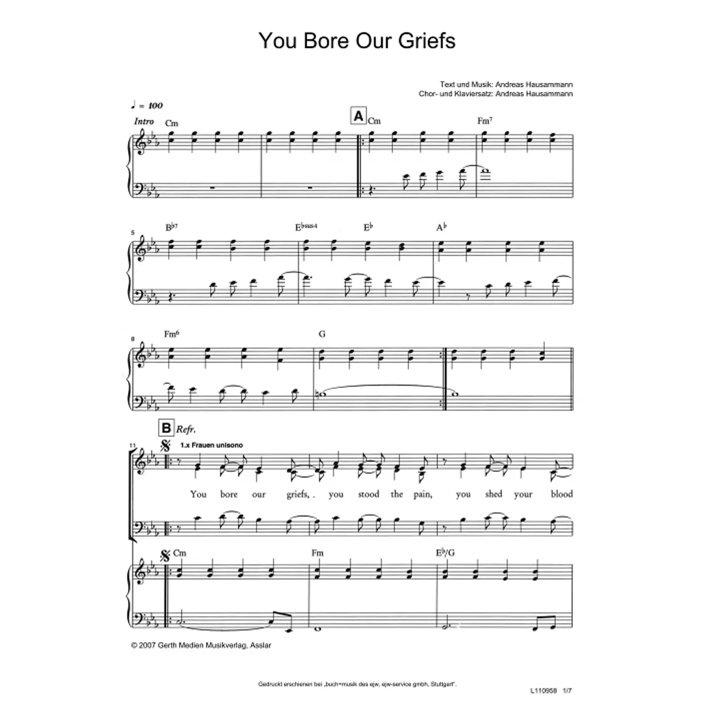 You Bore Our Griefs (diese Variante haben Sie gerade ausgewählt) (modern, Klavier, gemischter Chor, mit Akkorden, vierstimmig, C-Moll) Andreas Hausammann (Klaviersatz) |